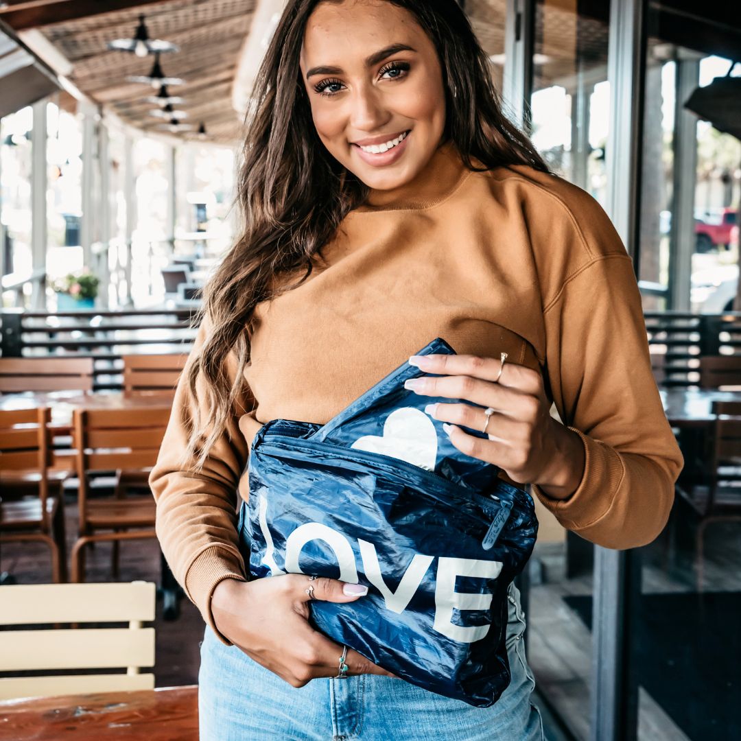 Fashionable, featherlight, and water-resistant bags for cyclers, golfers, hikers, pickleball players, runners, skiers, tennis players, and yogis.