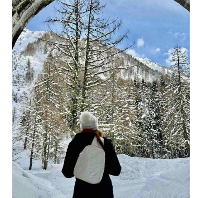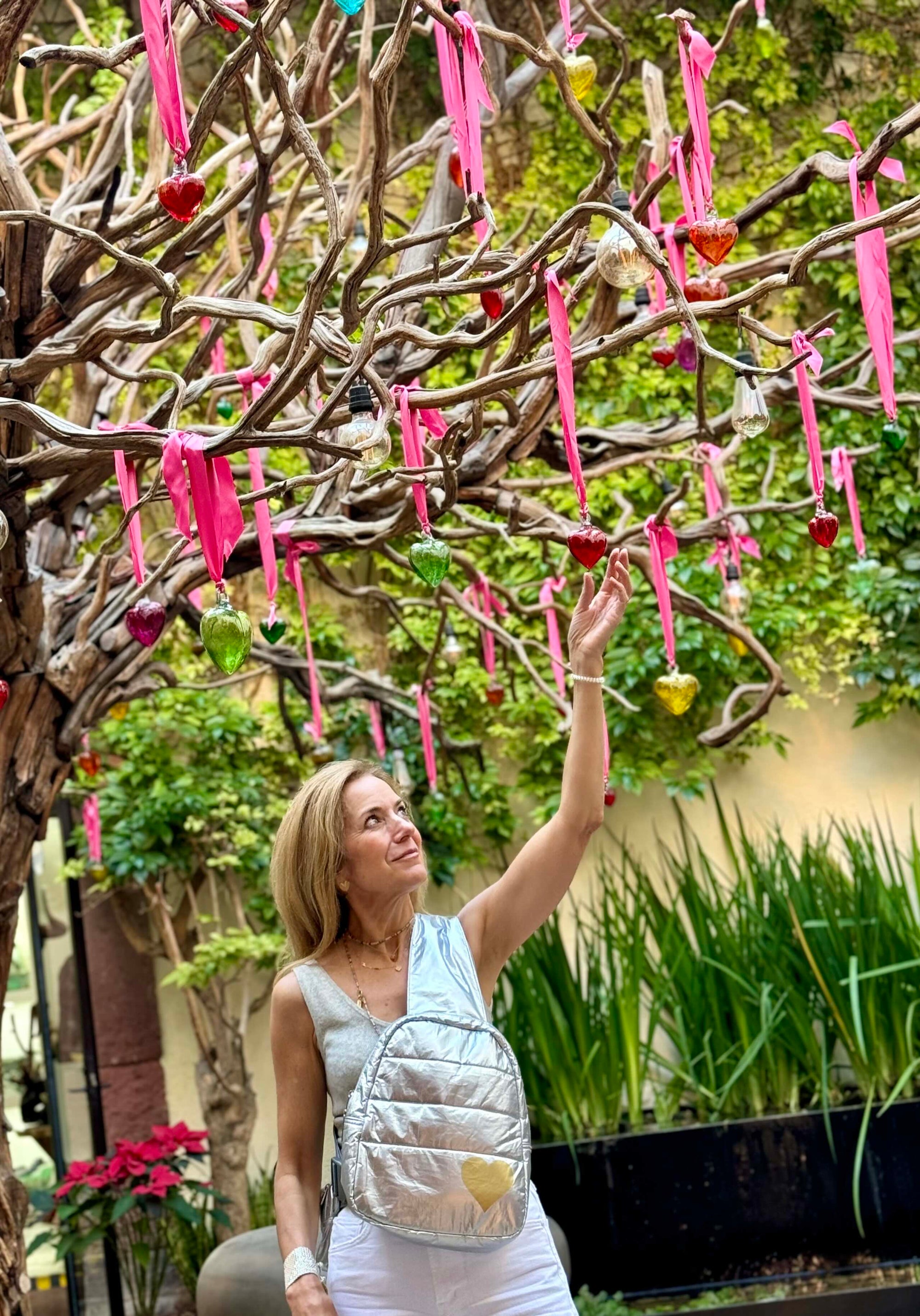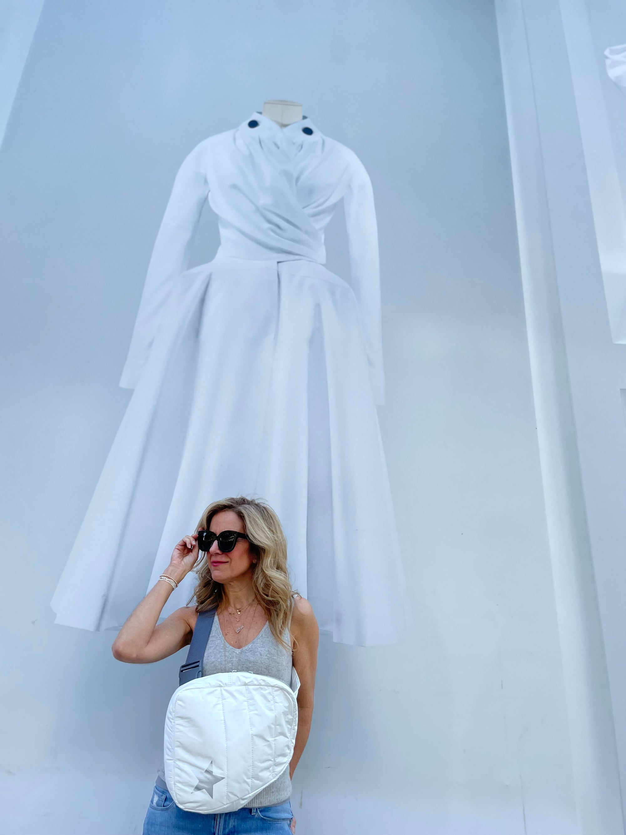 Puffer Crossbody Backpack in Shimmer Gray with Golden Beige Star