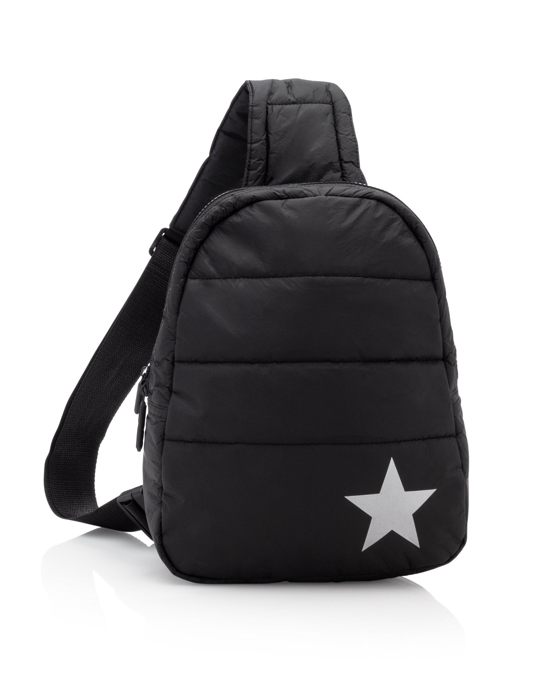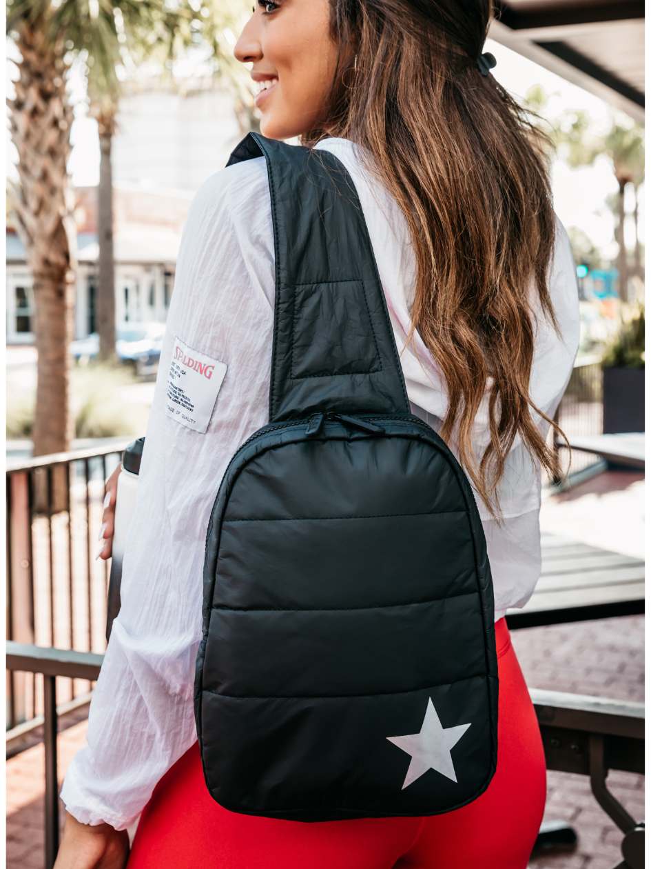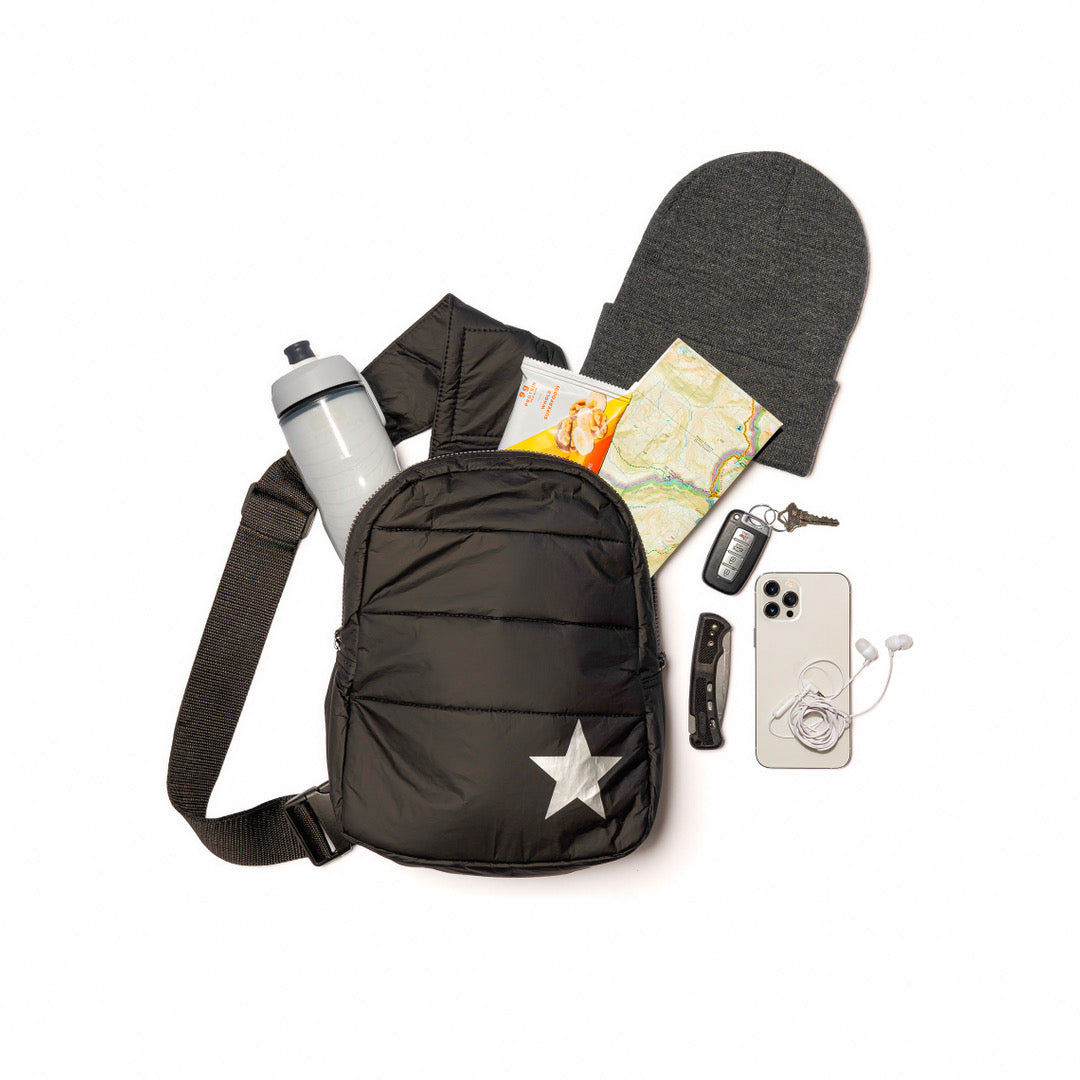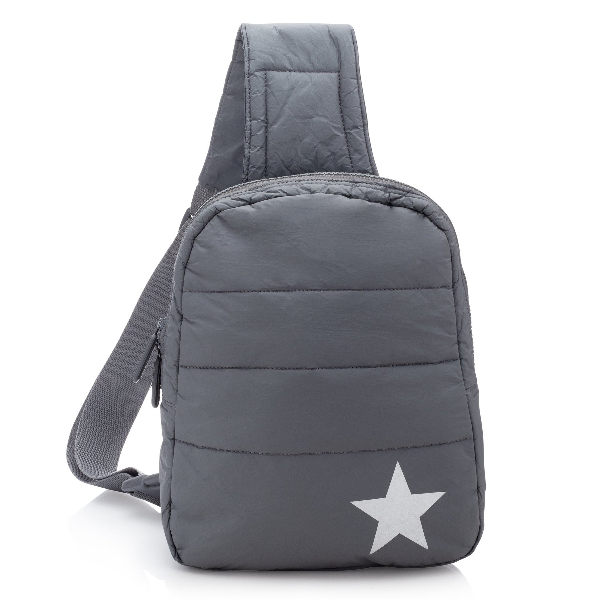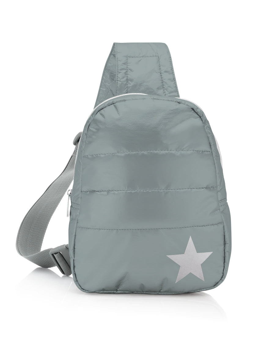 Puffer Crossbody Backpack in Cool Gray with Silver Star