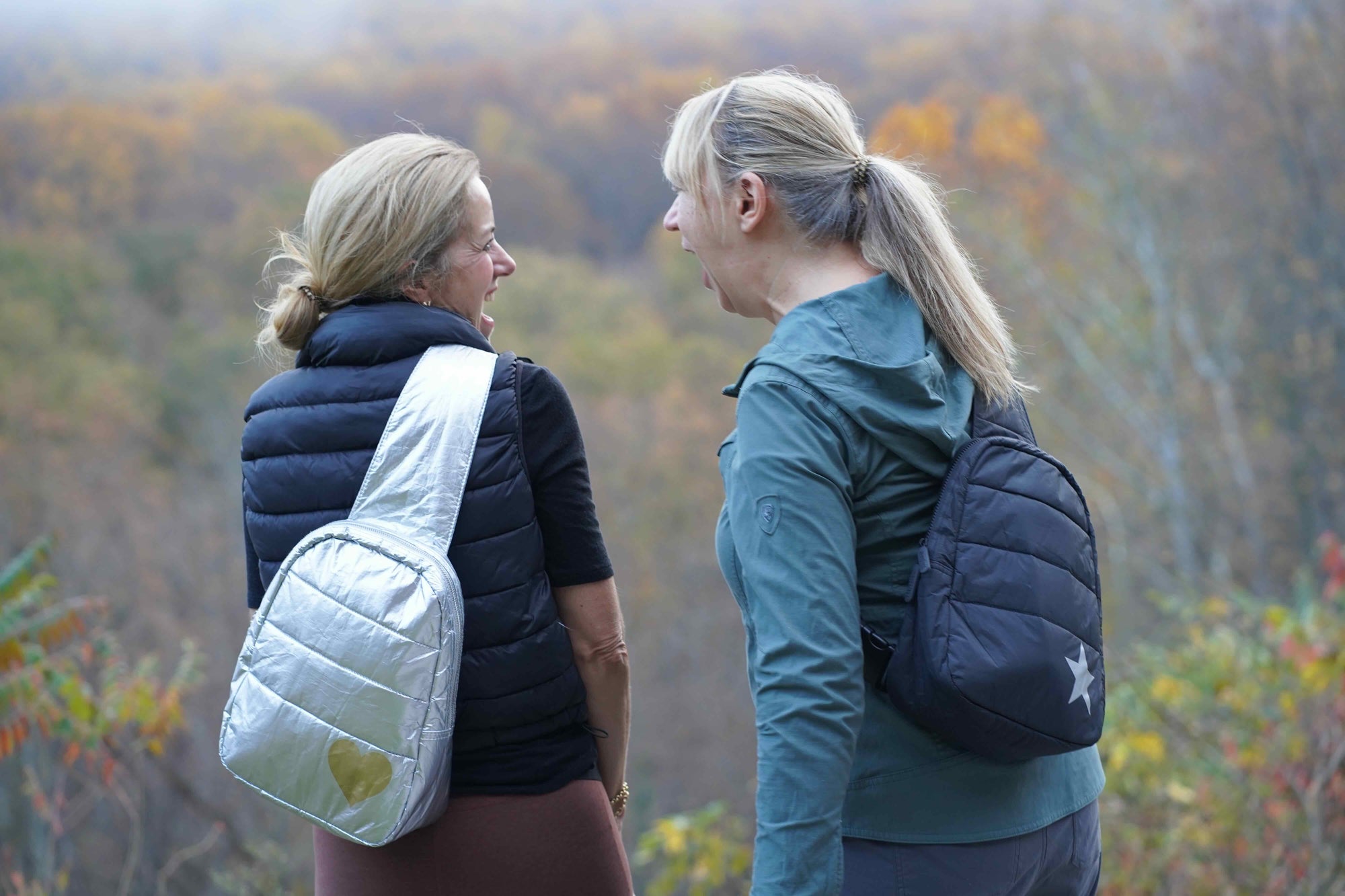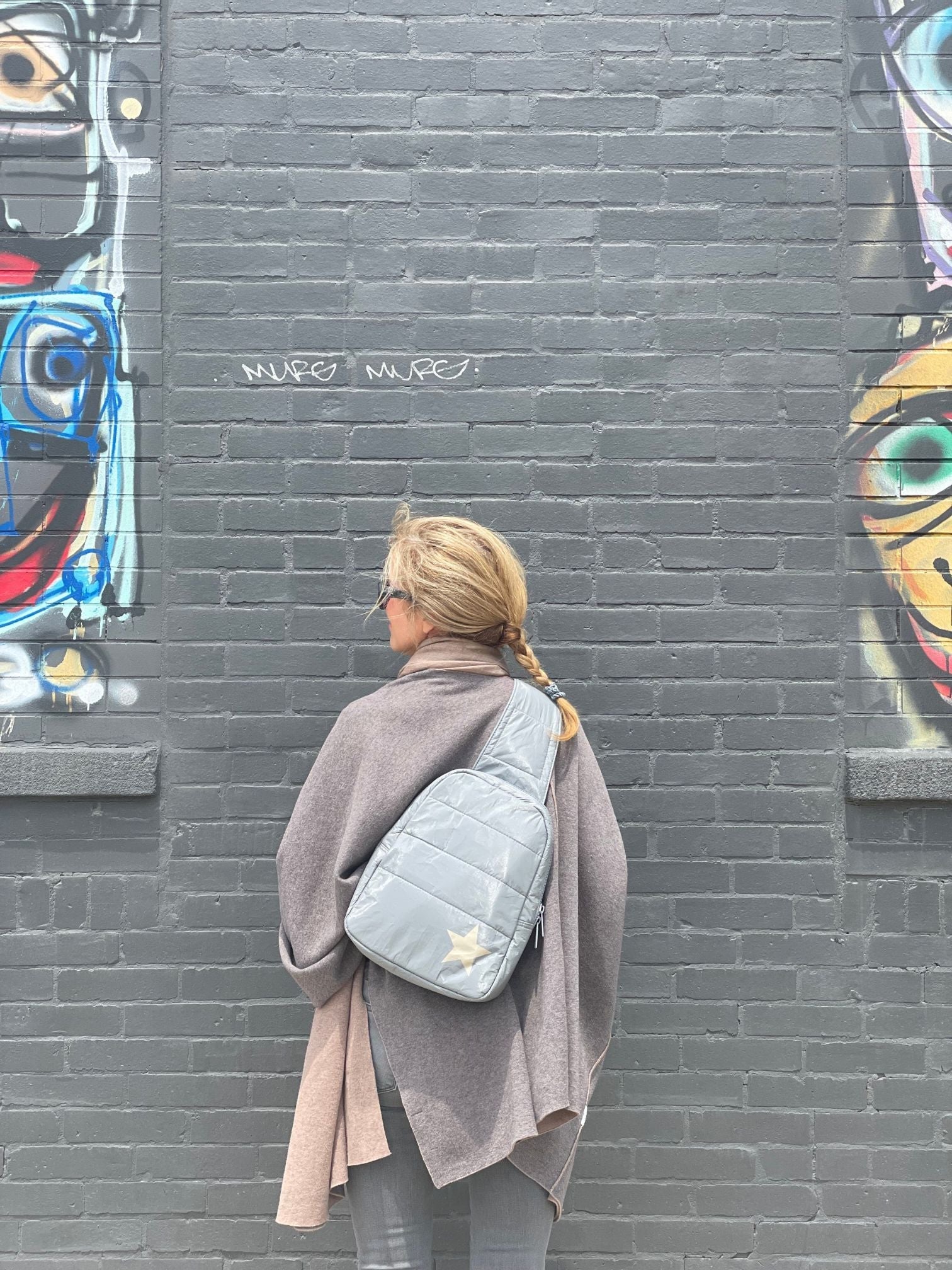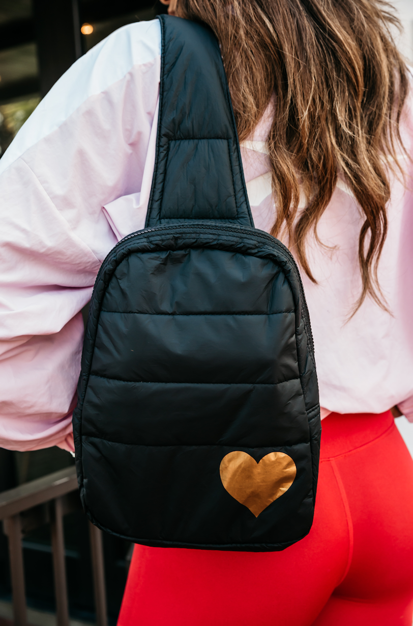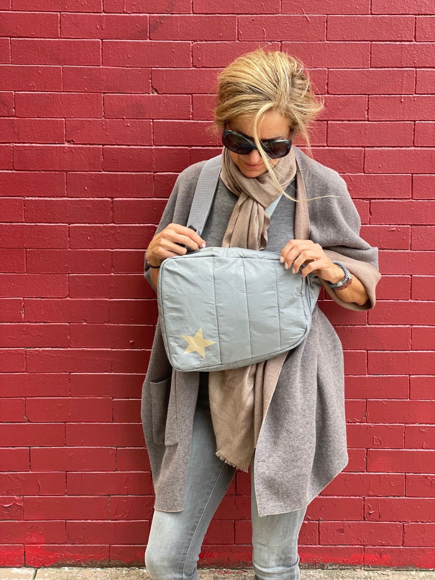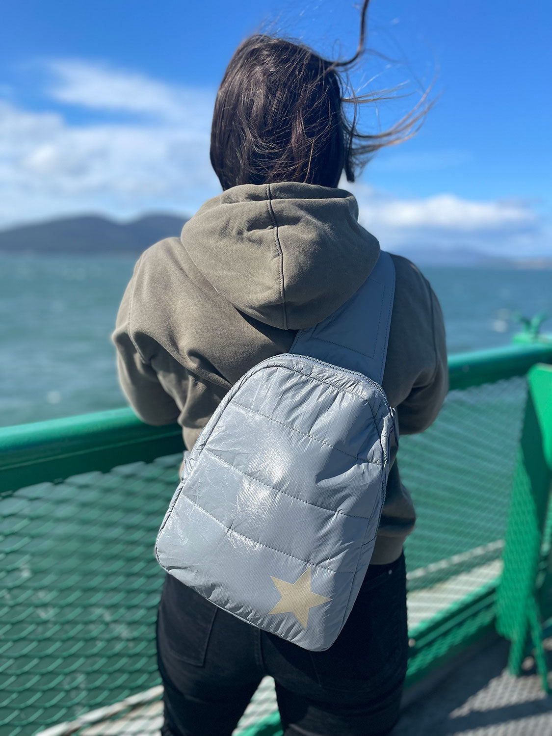 Puffer Crossbody Backpack in Cool Gray with Silver Star