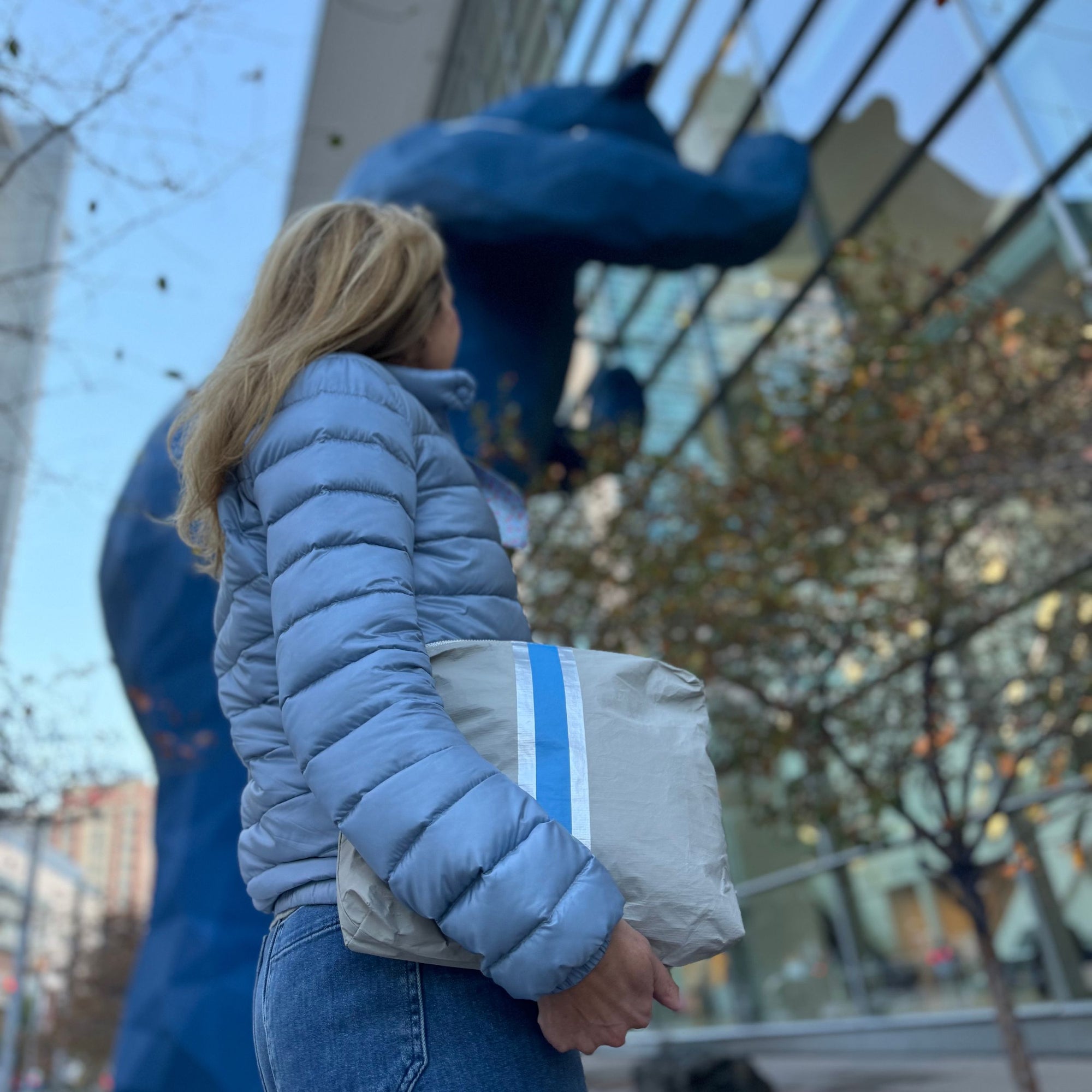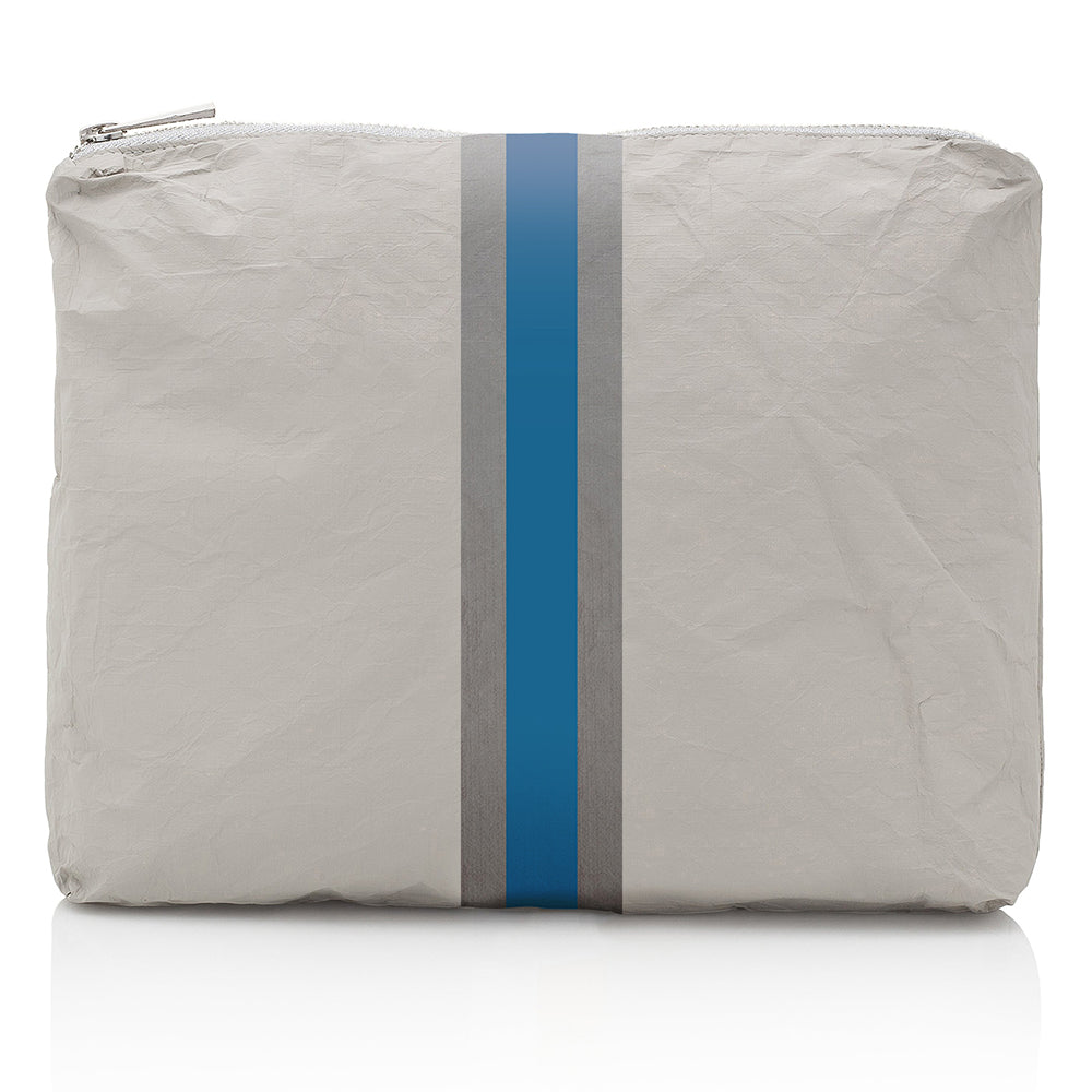 Medium Zipper Pack in Earth Gray with Sky Blue and Silver Stripe