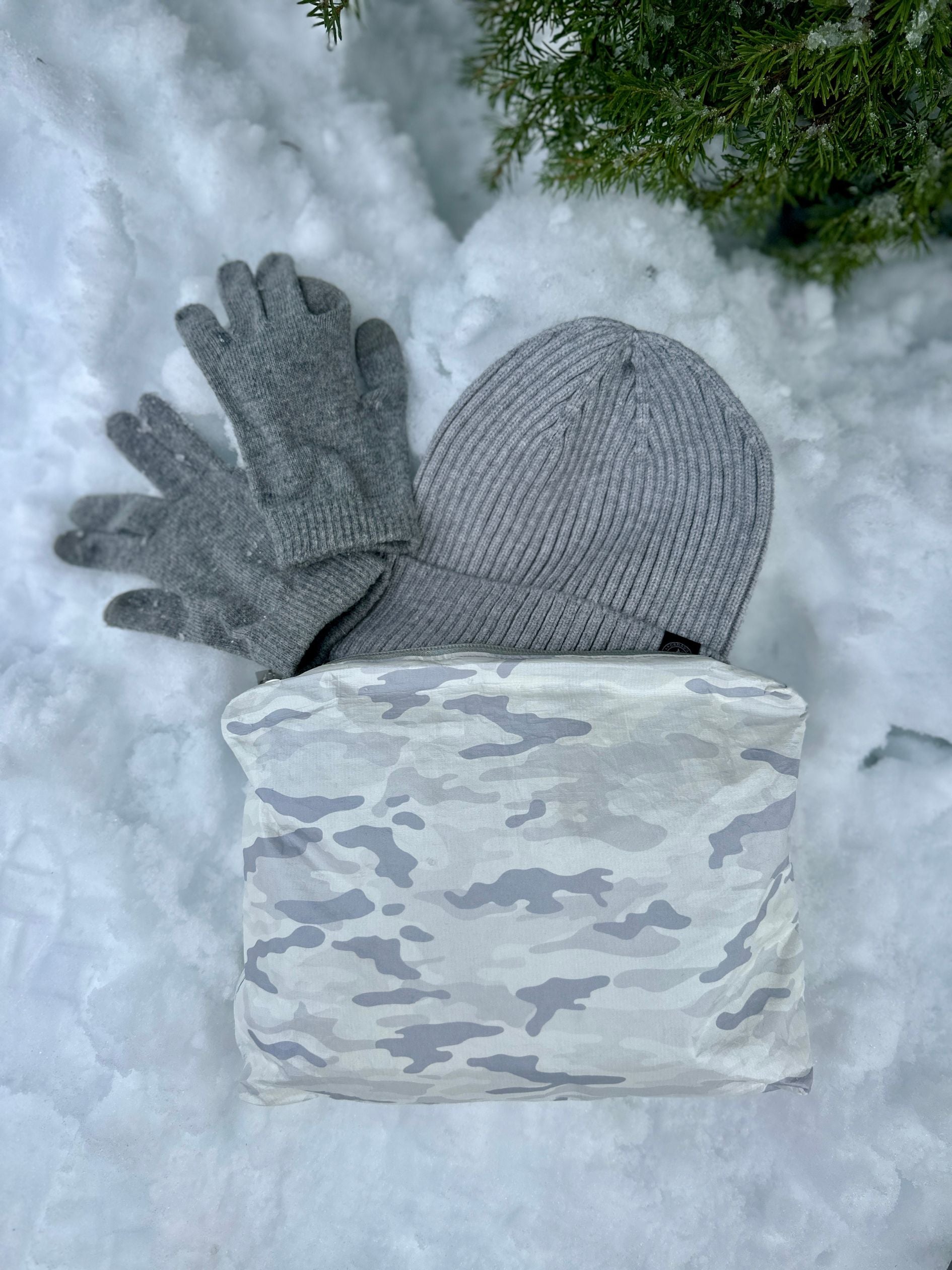 Set of Two - Zipper Pouches in Shimmer White Camo