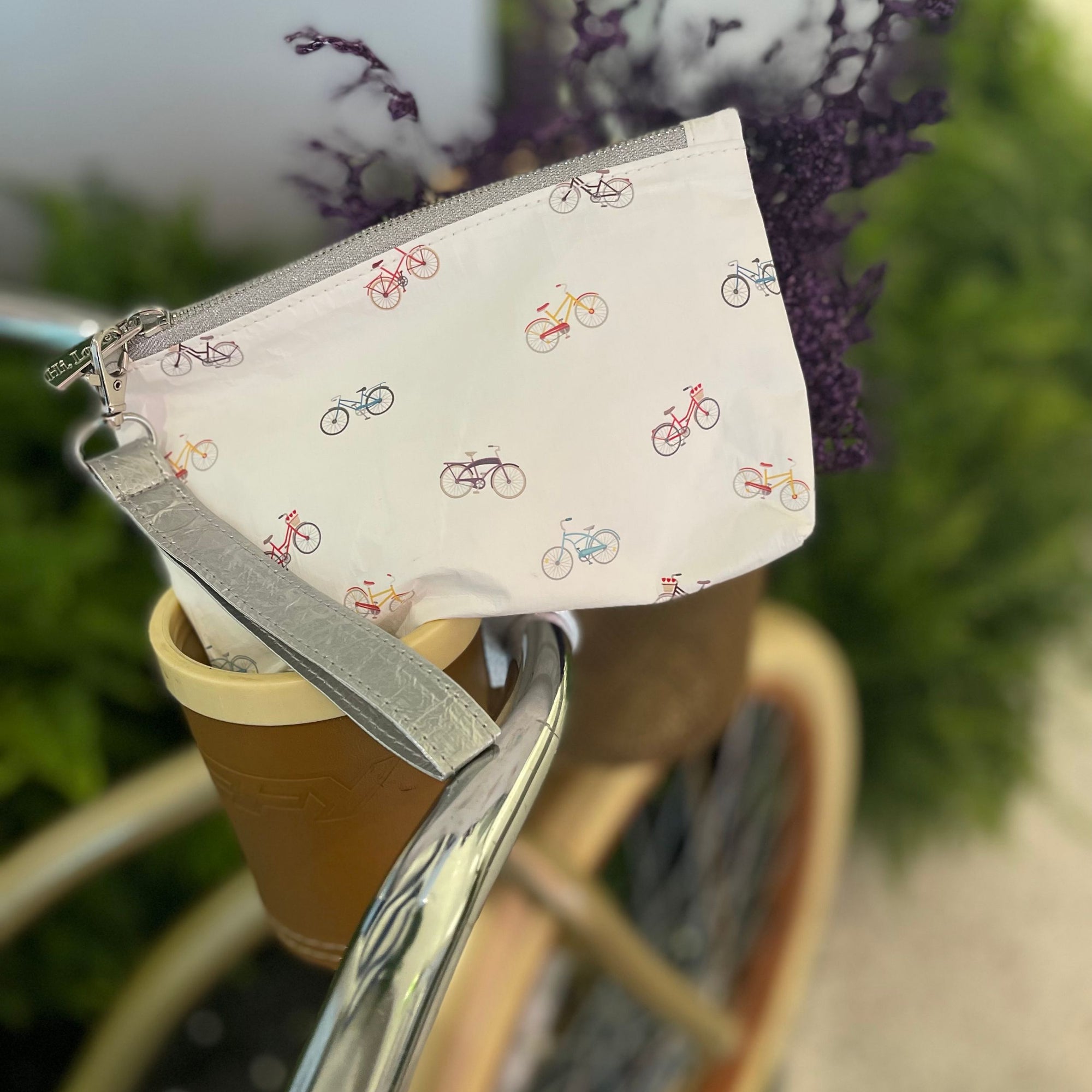Zip Wristlet in Colorful Bicycles Pattern