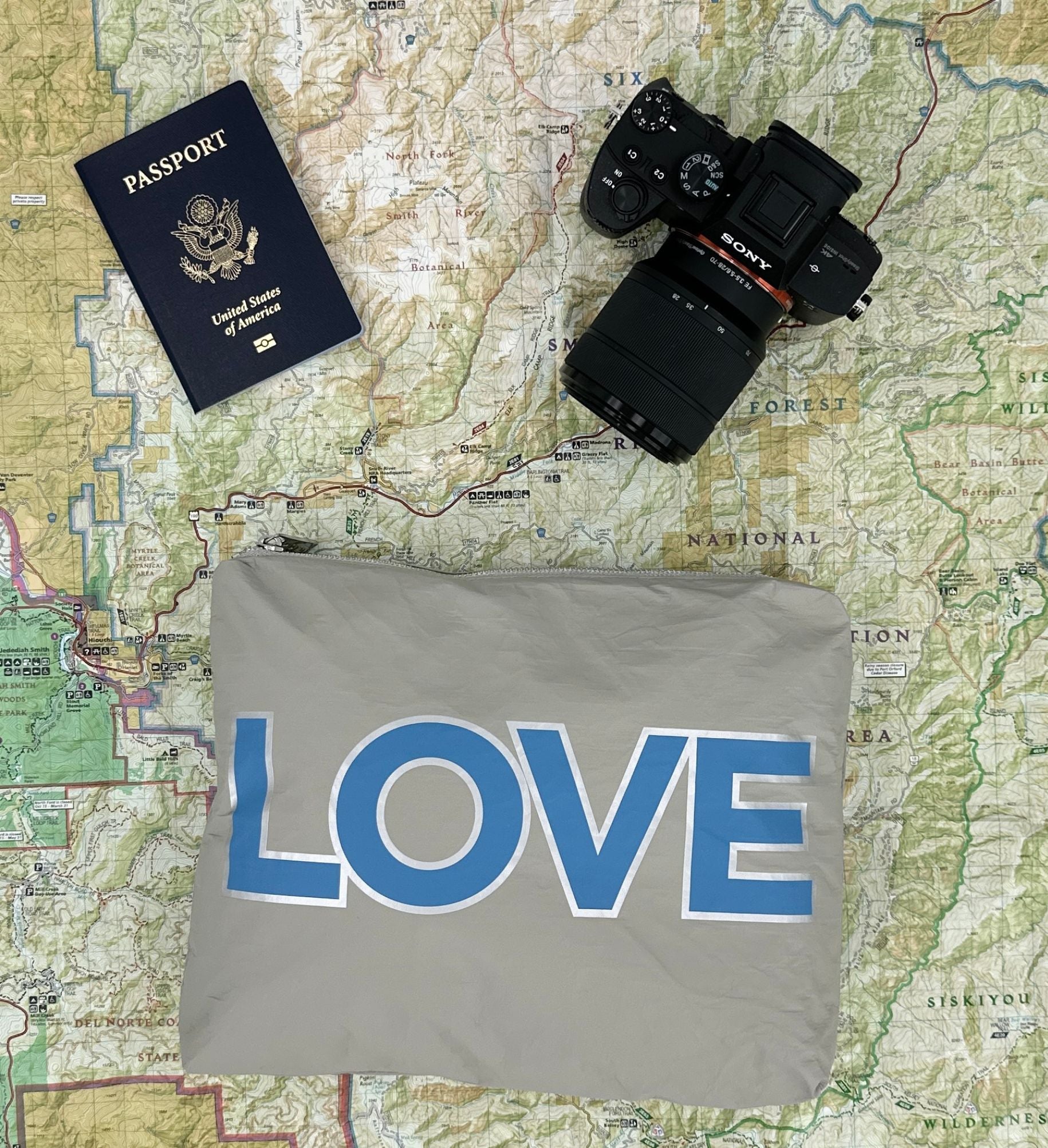 Medium Zipper Pack - Double LOVE in Earth Gray and Sky Blue