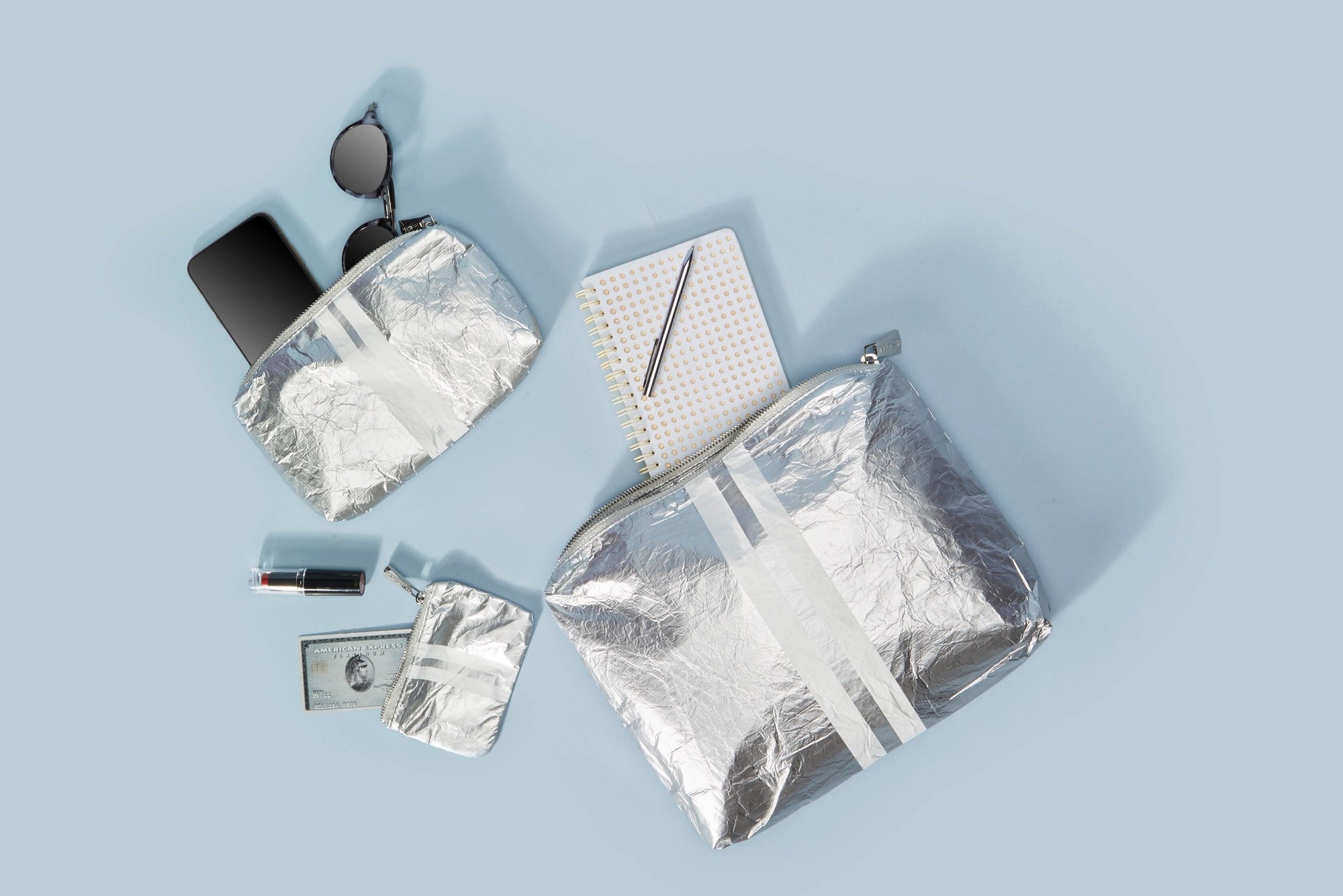 Travel light and in Style - Set of Three Travel Pouches in Earth Gray and Silver