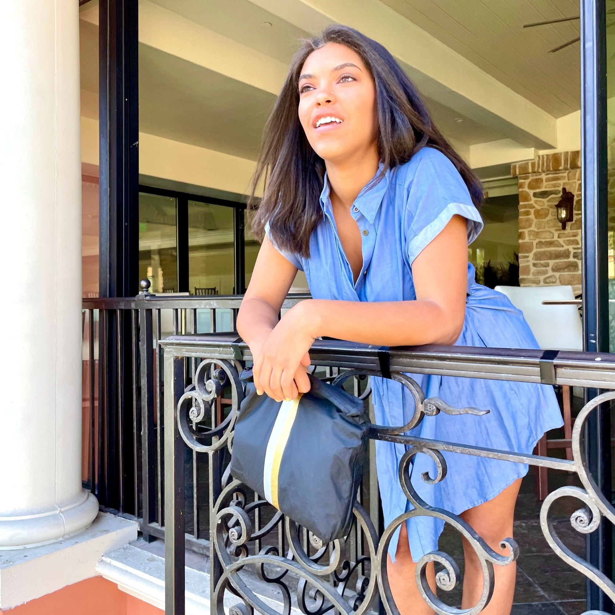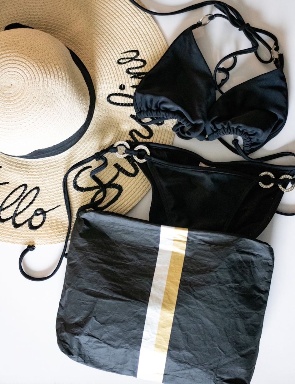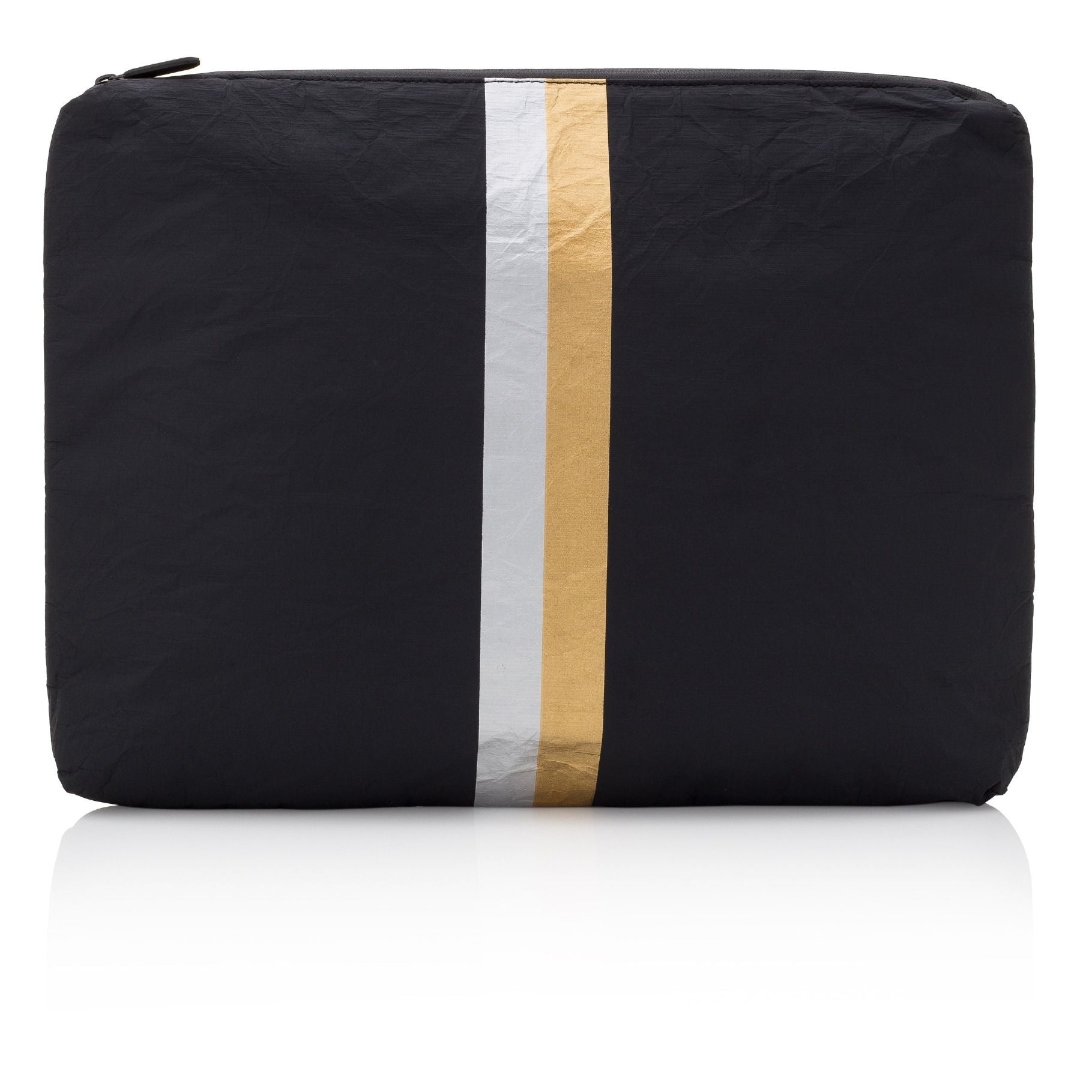 The Weekender Bag in Earth Gray with Silver and Gold Stripes