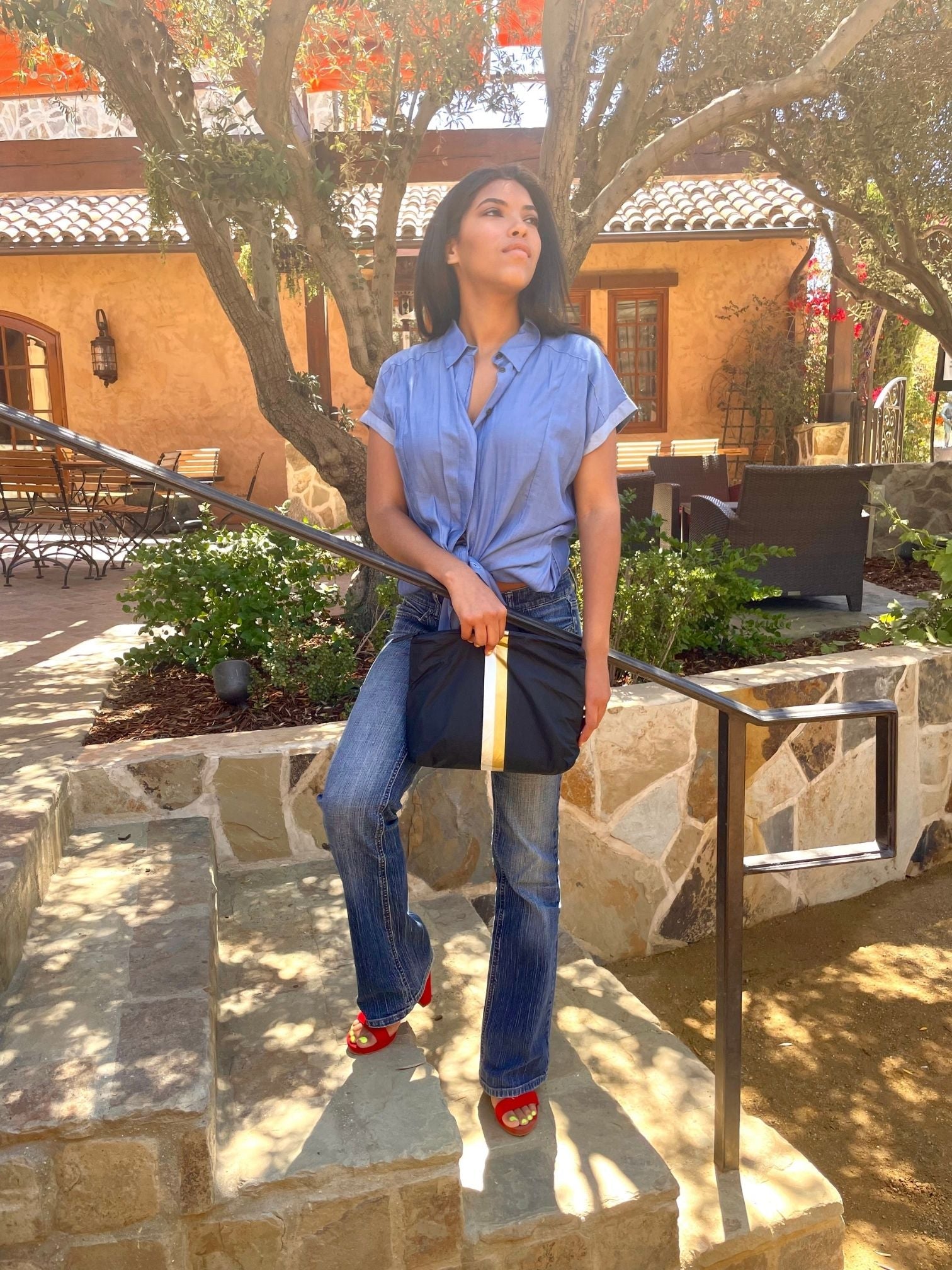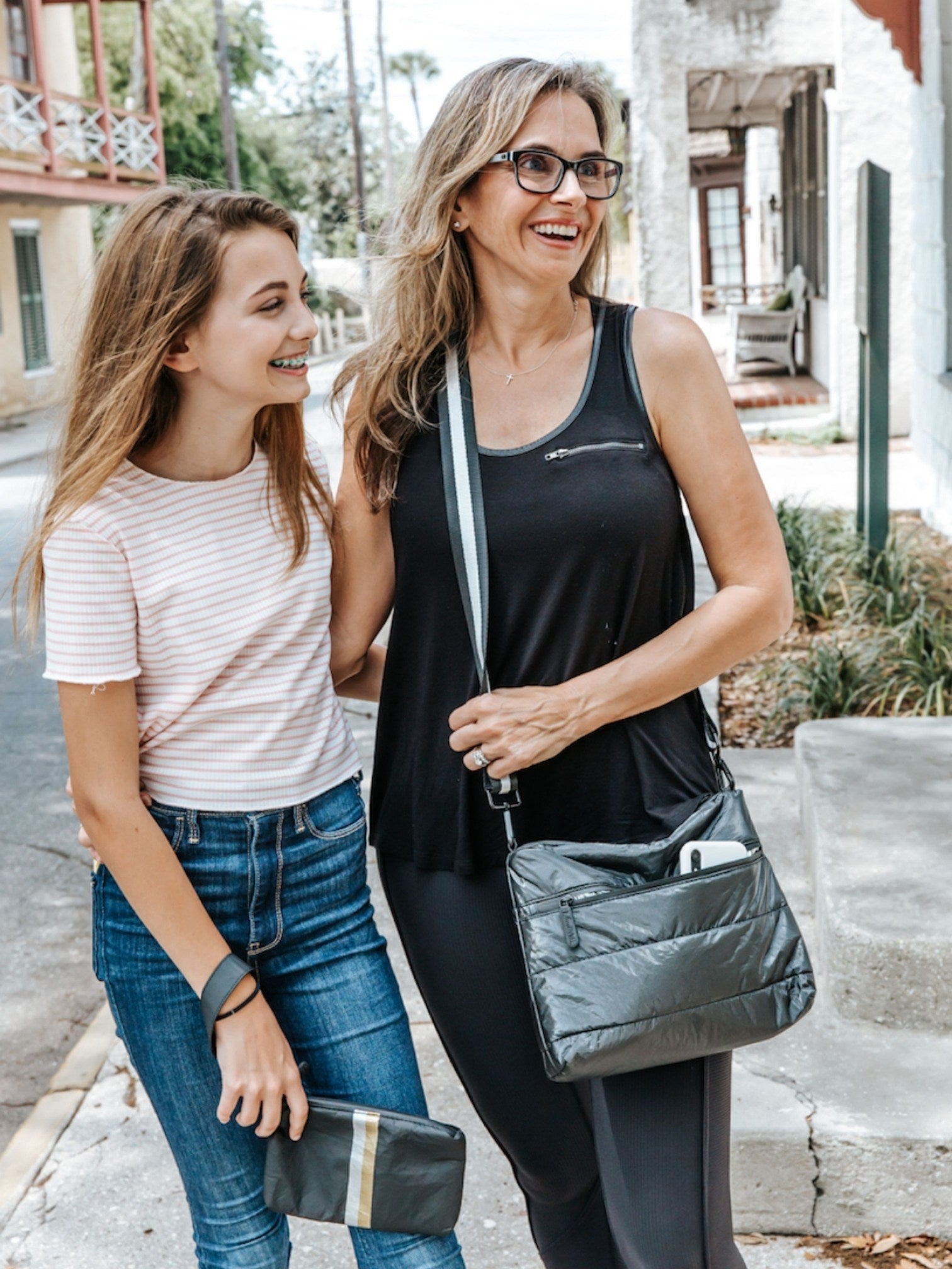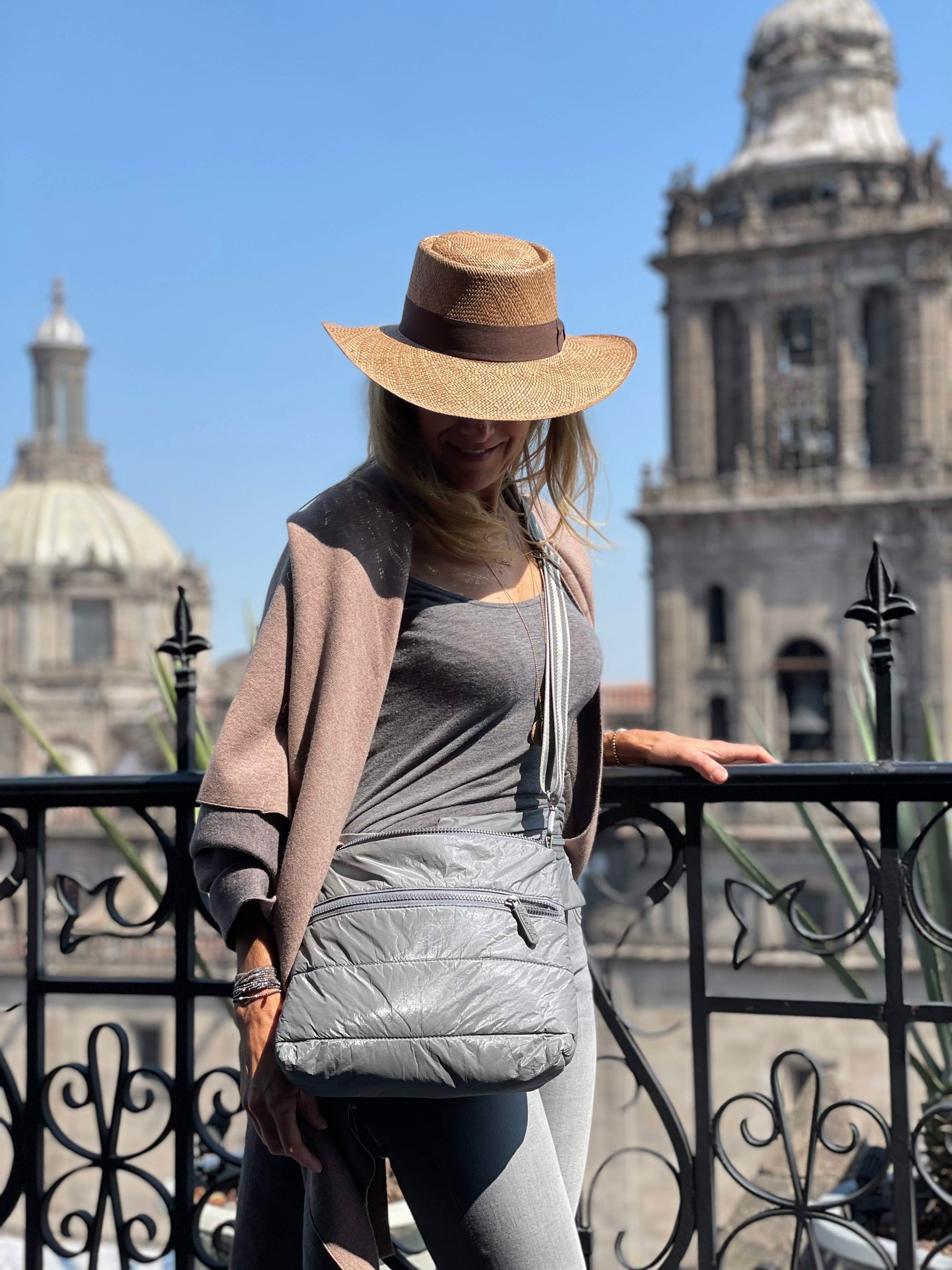 Convertible Crossbody Bag - Earth Gray with Silver & Gold Stripes