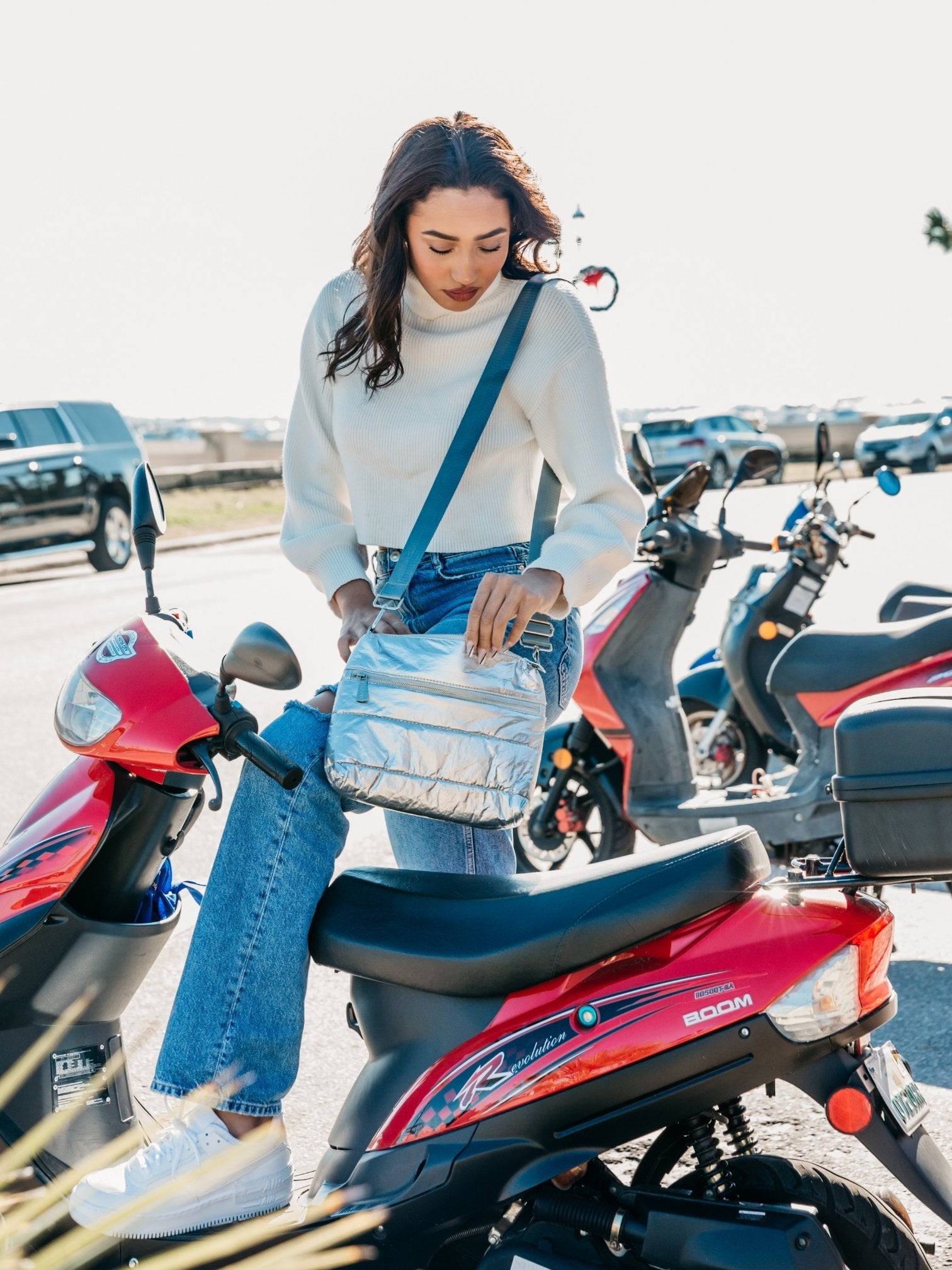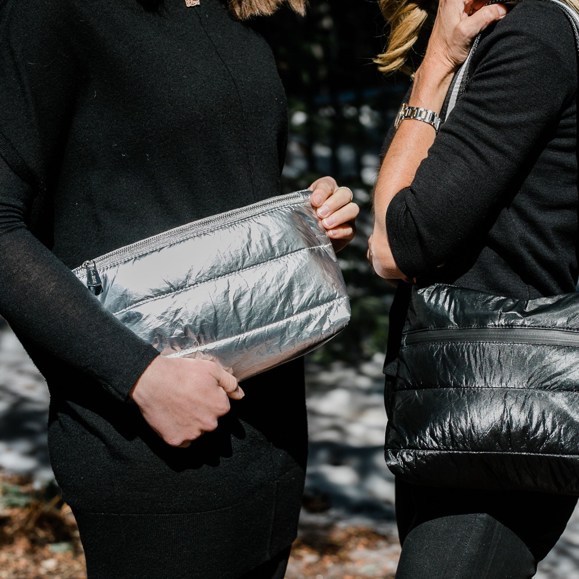 Motivate to Move Set - Cool Gray Puffer Crossbody Backpack & Silver Fanny Pack