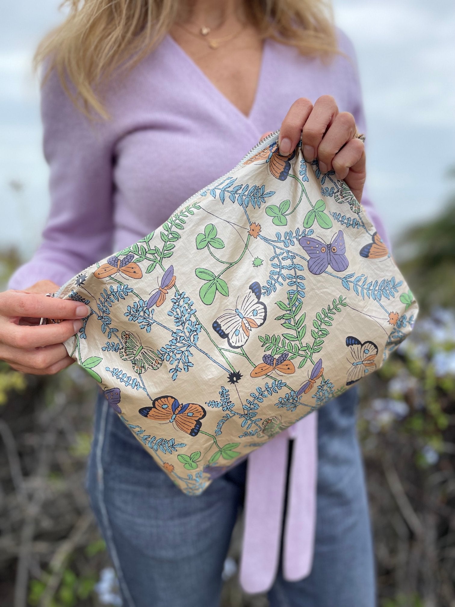 Cosmetic Case - Lunch Box - Butterfly in the Wild on Shimmer Beige