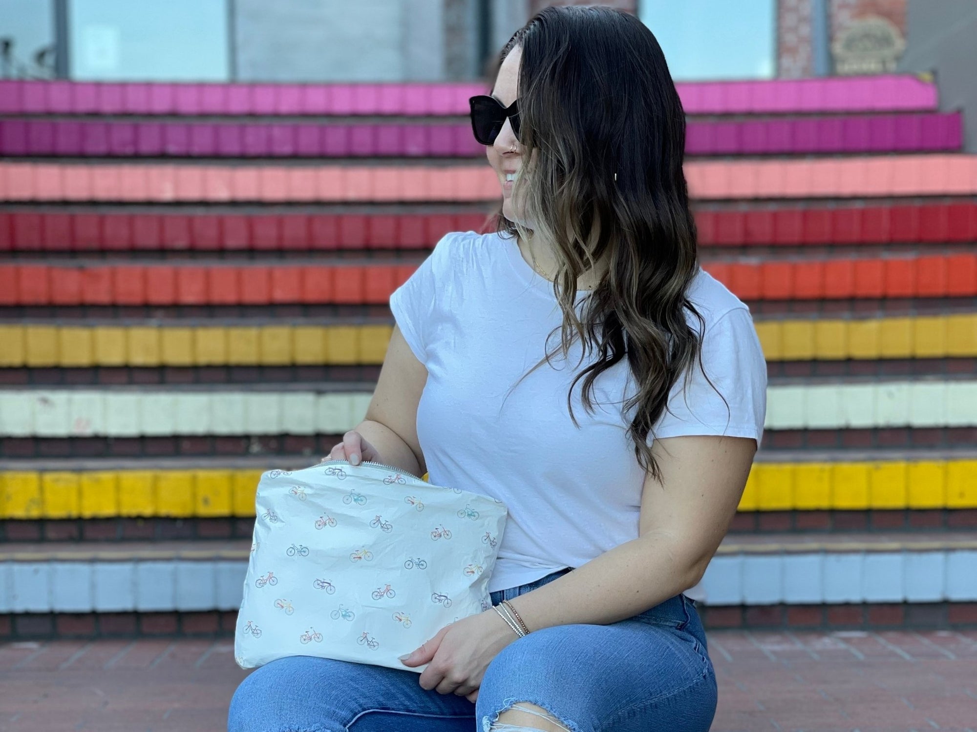 Medium Zipper Pouch in Colorful Bicycles Pattern