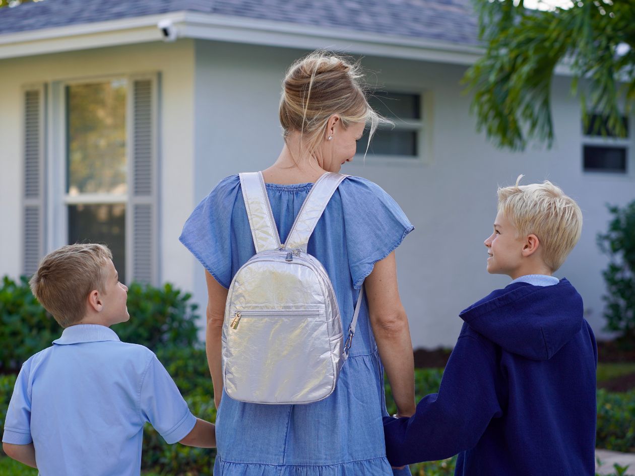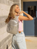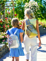 The ultimate convertible backpack or sling bag for mommy and me adventures! Match each other with the same silver color, or compliment each other with one in silver and one in gold!