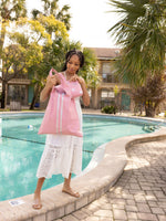 Saunter through summer with this fairy pink tote that reflects our love of the resort island life.