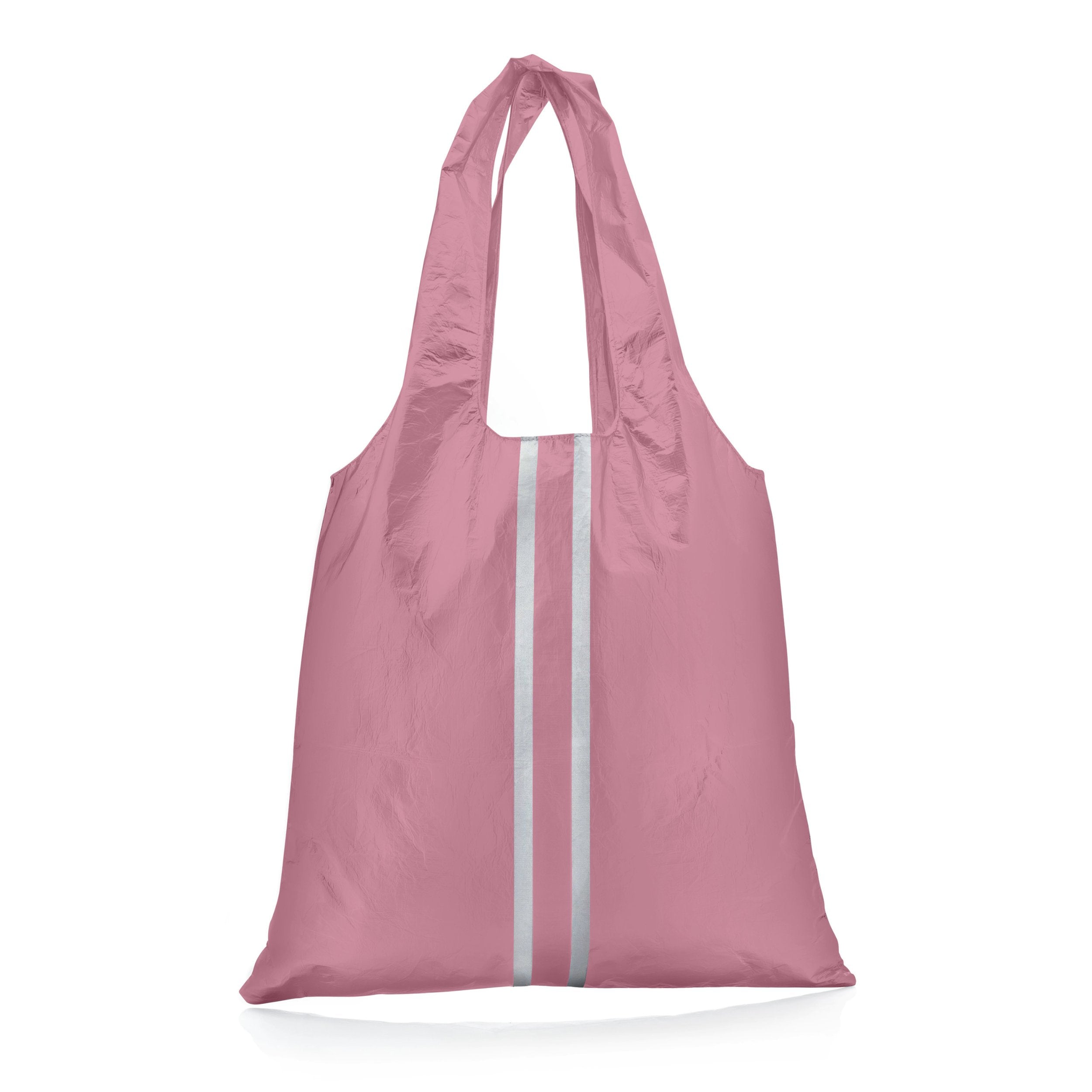 Carryall Tote Bag with Pocket in Fairy Pink with Silver Stripes