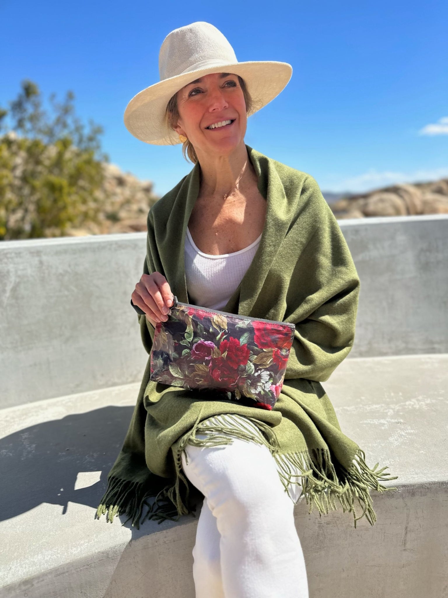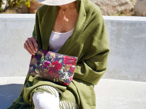 Cosmetic Zipper Pouch in Cabernet, Cream & Green Floral