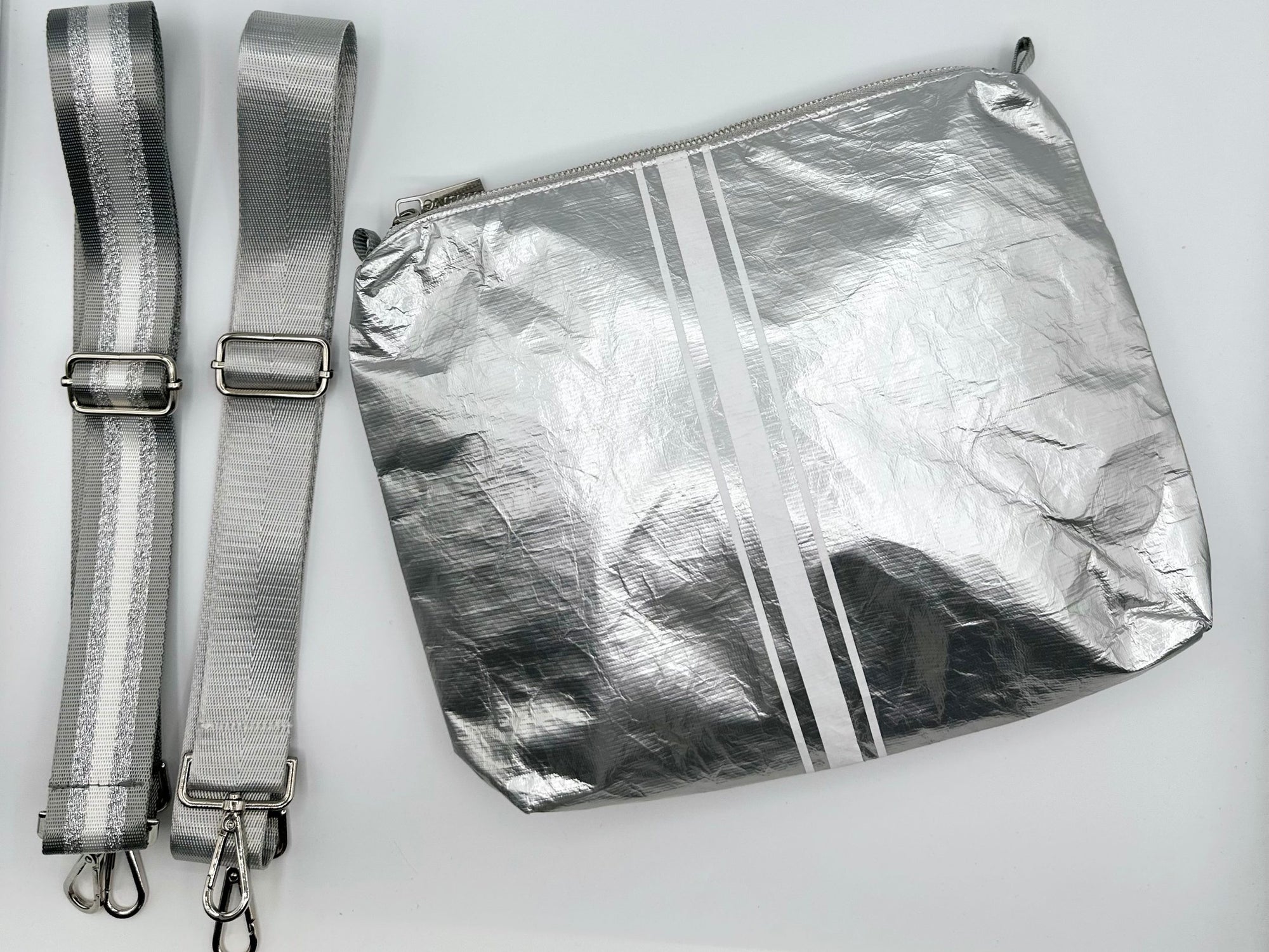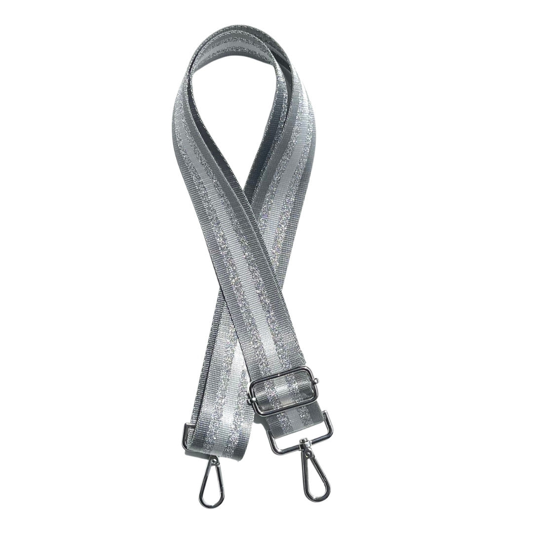 Crossbody Purse Strap - Gray with White & Silver Stripe