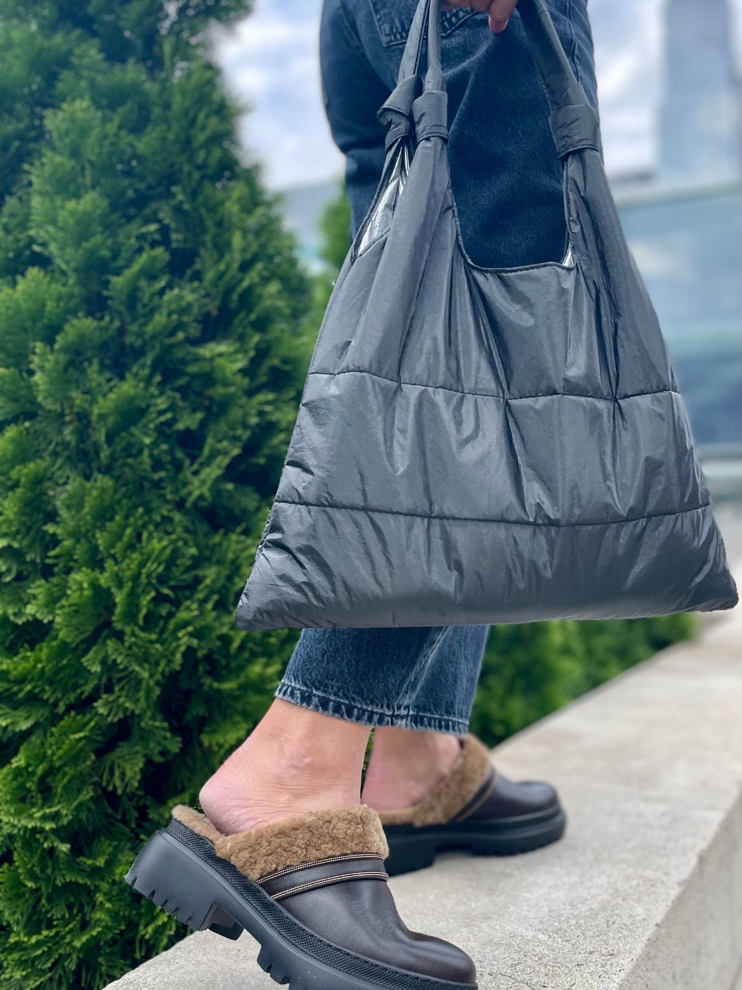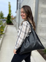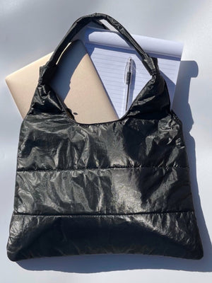 Our newest plush and versatile everyday Puffer Purse Tote in Shimmer Black!