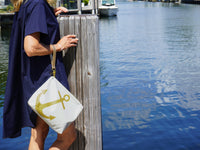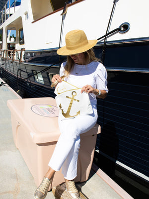 Medium Zipper Pack in “Anchors Aweigh” Shimmer White with Gold Anchor