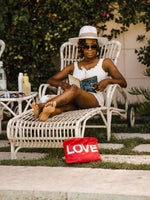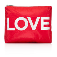 Medium Zipper Pouch in Crimson Red with Silver "LOVE"