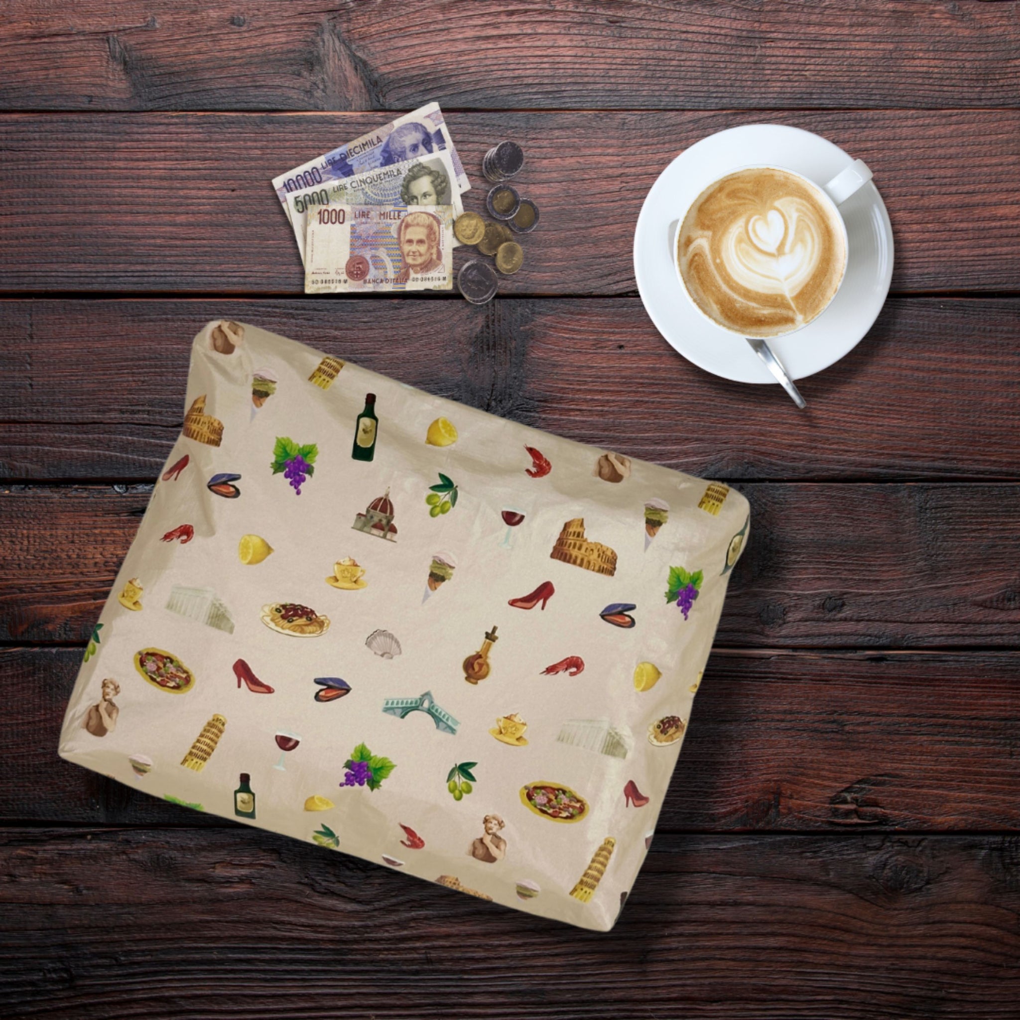 Carry a piece of Italy on you with our Medium Zipper Pouch adorned with a vibrant array of iconic landmarks and charming motifs that evoke the spirit and beauty of Italian culture.