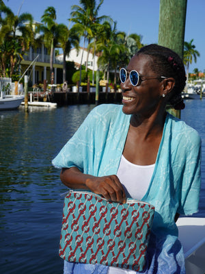 Medium Zipper Pack - Nautical Knots in Turquoise & Red