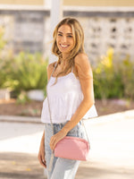 - Features an interior zipper pocket and fits a 12 oz water bottle, lip gloss, phone, and essentials