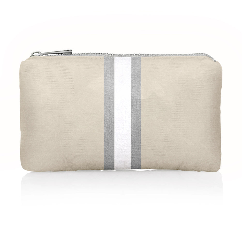 Mini Zipper Pouch in Shimmer Beige with White & Silver Stripes
