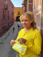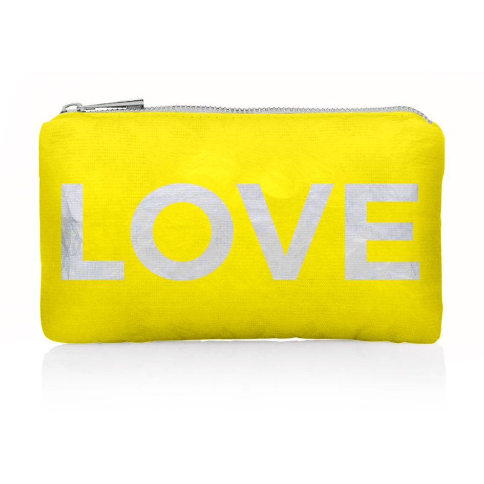 Mini Pouch in Lemon Yellow with Silver "LOVE"