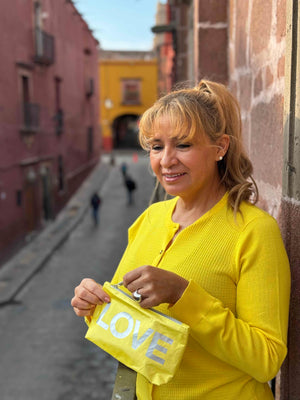 A burst of spring sunshine to set you free and brighten your spring days to just be! Crafted in the most cheerful shade of lemon yellow, this mini LOVE pouch is perfect for adding a pop of color to your ensemble.