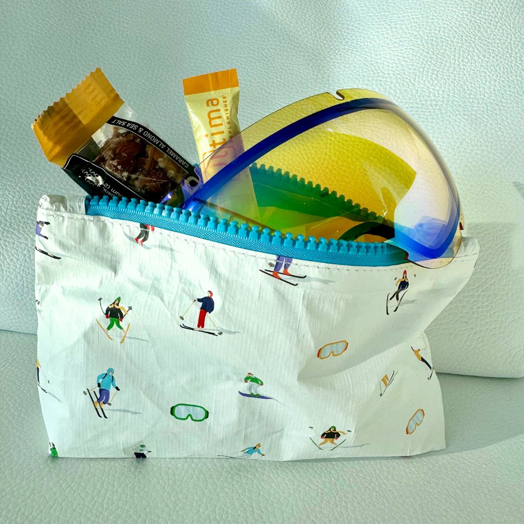 Mini Zipper Pouch - Dancing Skiers with Goggles