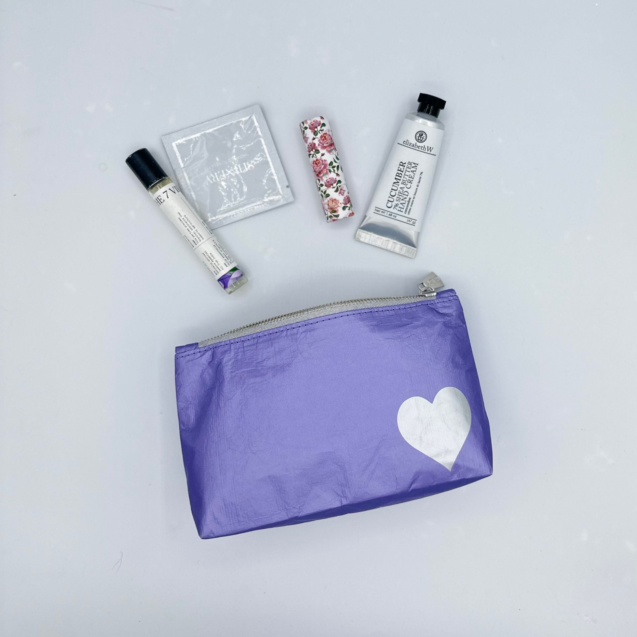 Mini Zipper Pack in Shimmer Purple with Silver Heart