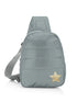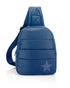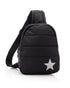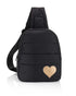 Puffer Crossbody Backpack in Black with Gold Heart