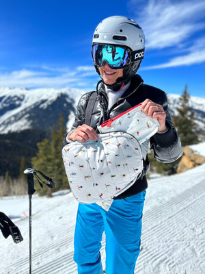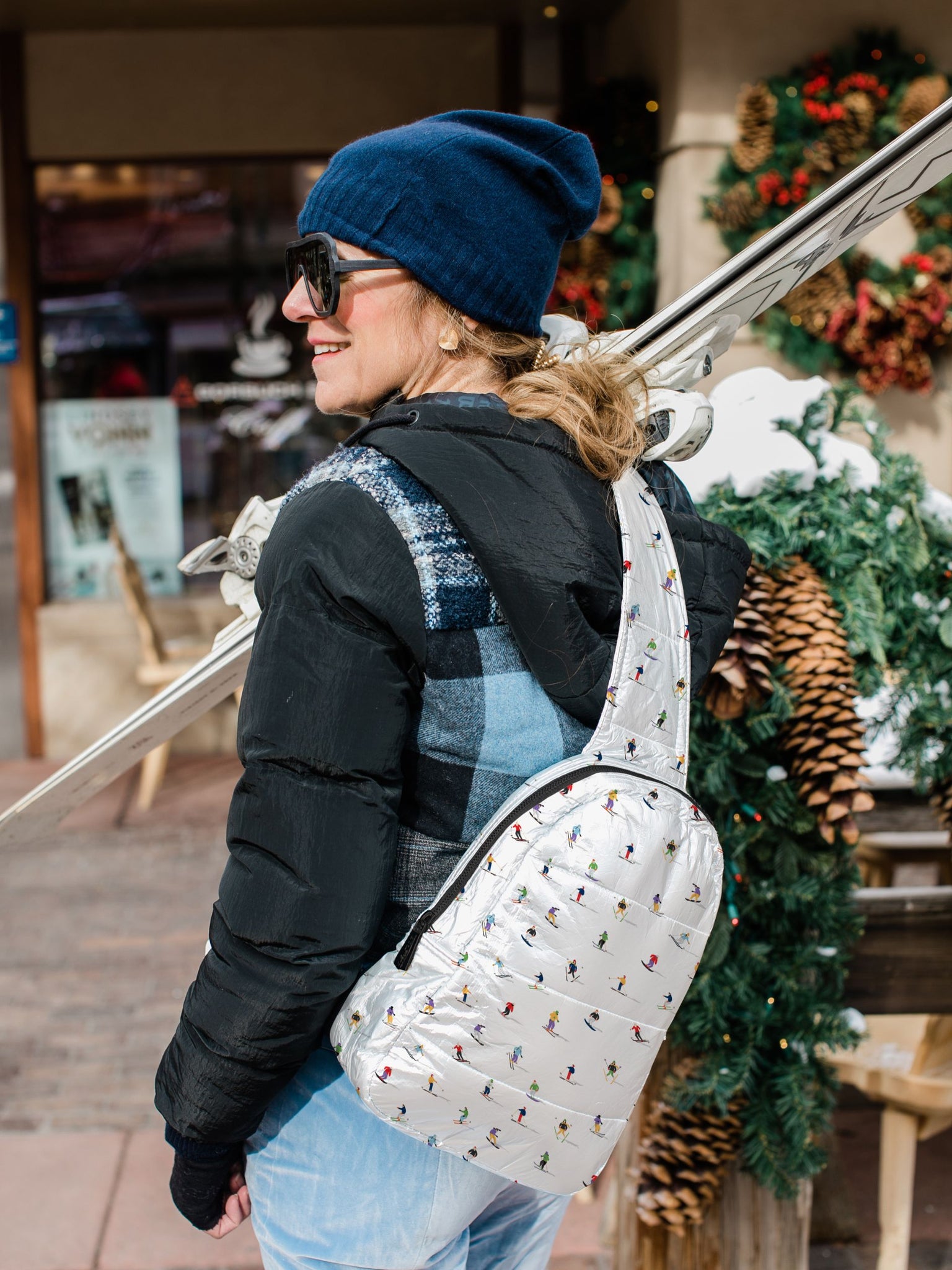 Our Dancing Skier Collection is inspired by our love for Aspen’s Cloud 9 Restaurant in a hidden mountain location you can only get to by skis. Here, you’ll find Swiss Chalet-inspired cuisine and effervescent bubbly, happy company, and fabulous music. Everyone ends up dancing down the mountain on skis after lunch - hence the name for our inspired packs: Dancing Skiers.