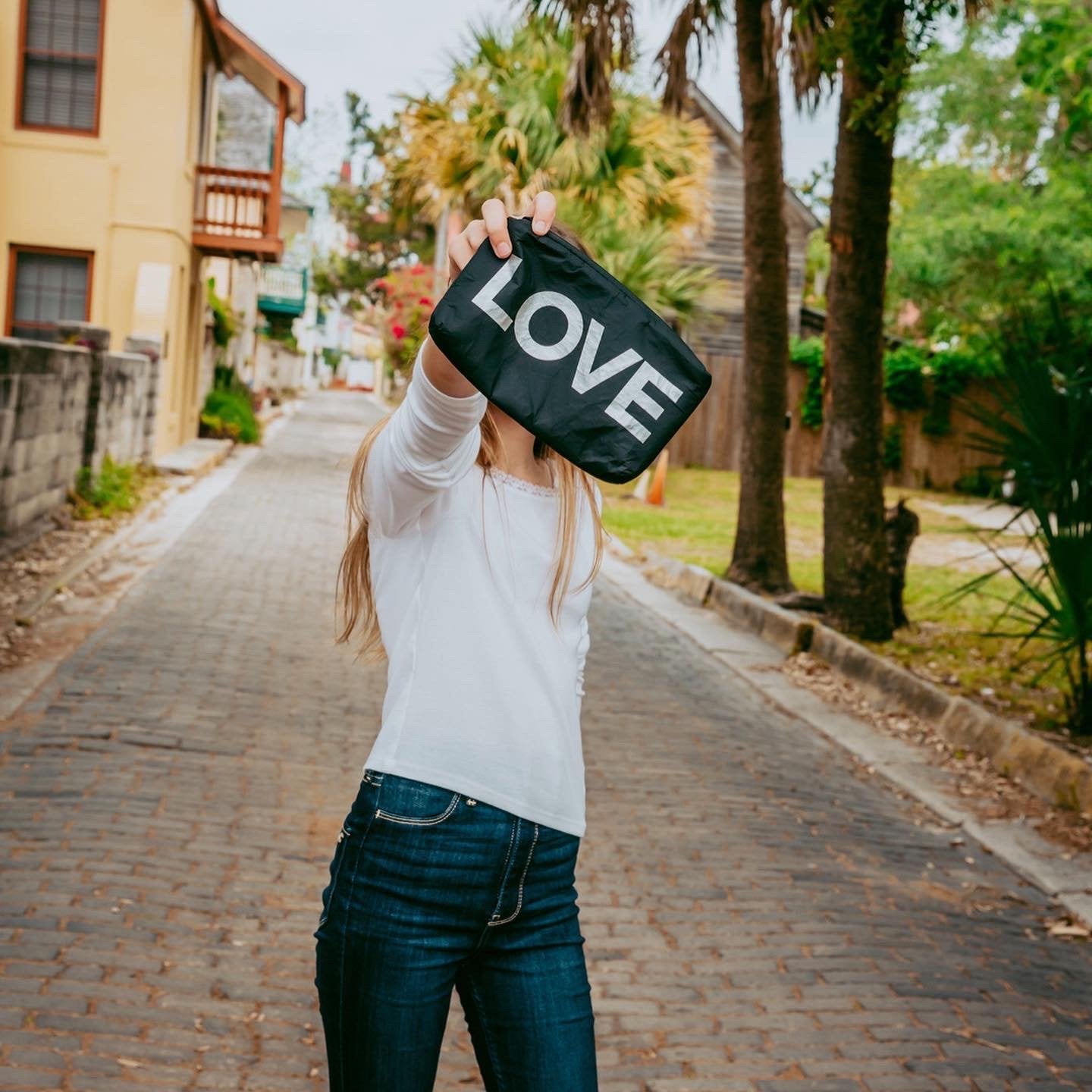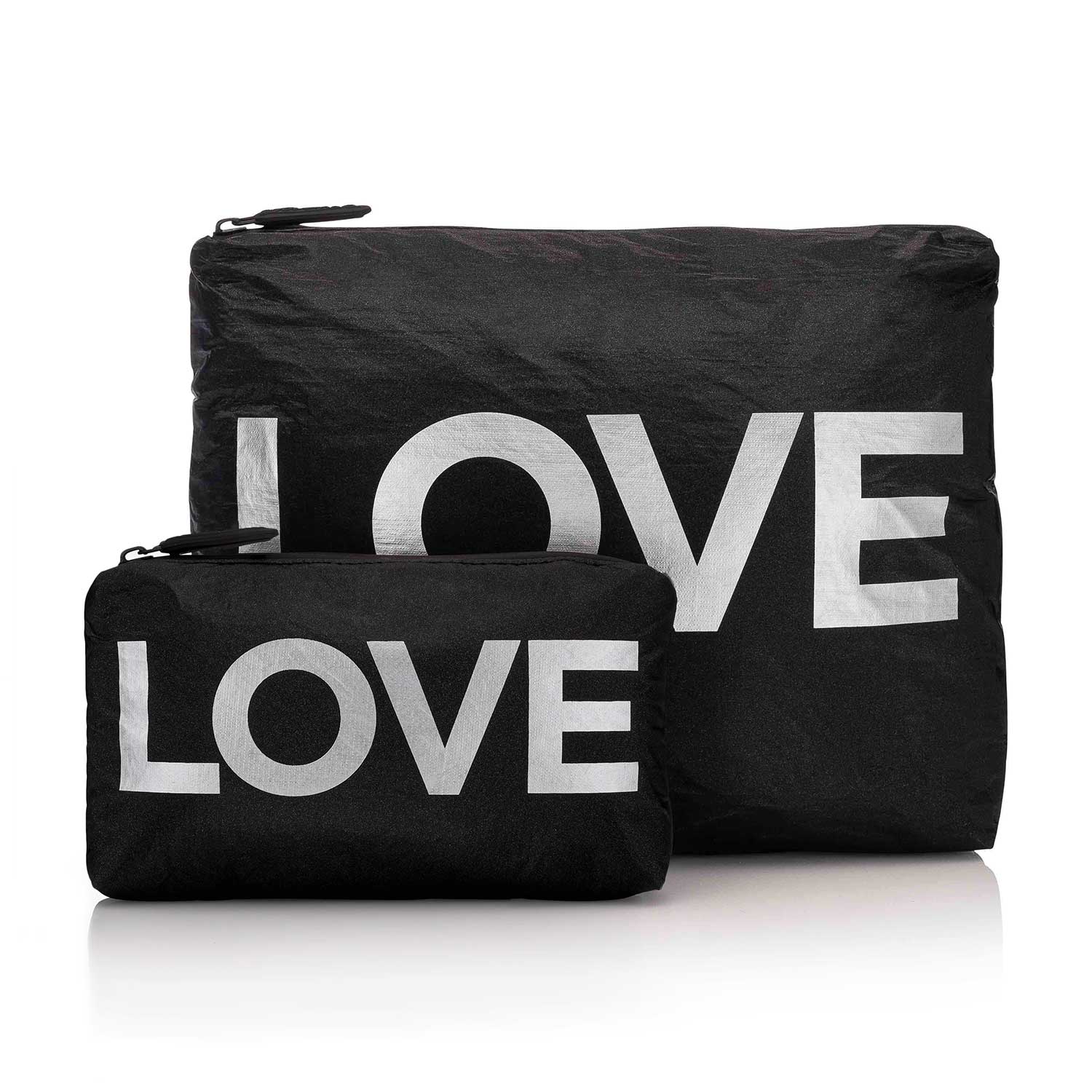 Set of Two - Organizational Pouches - Black with Silver "LOVE"