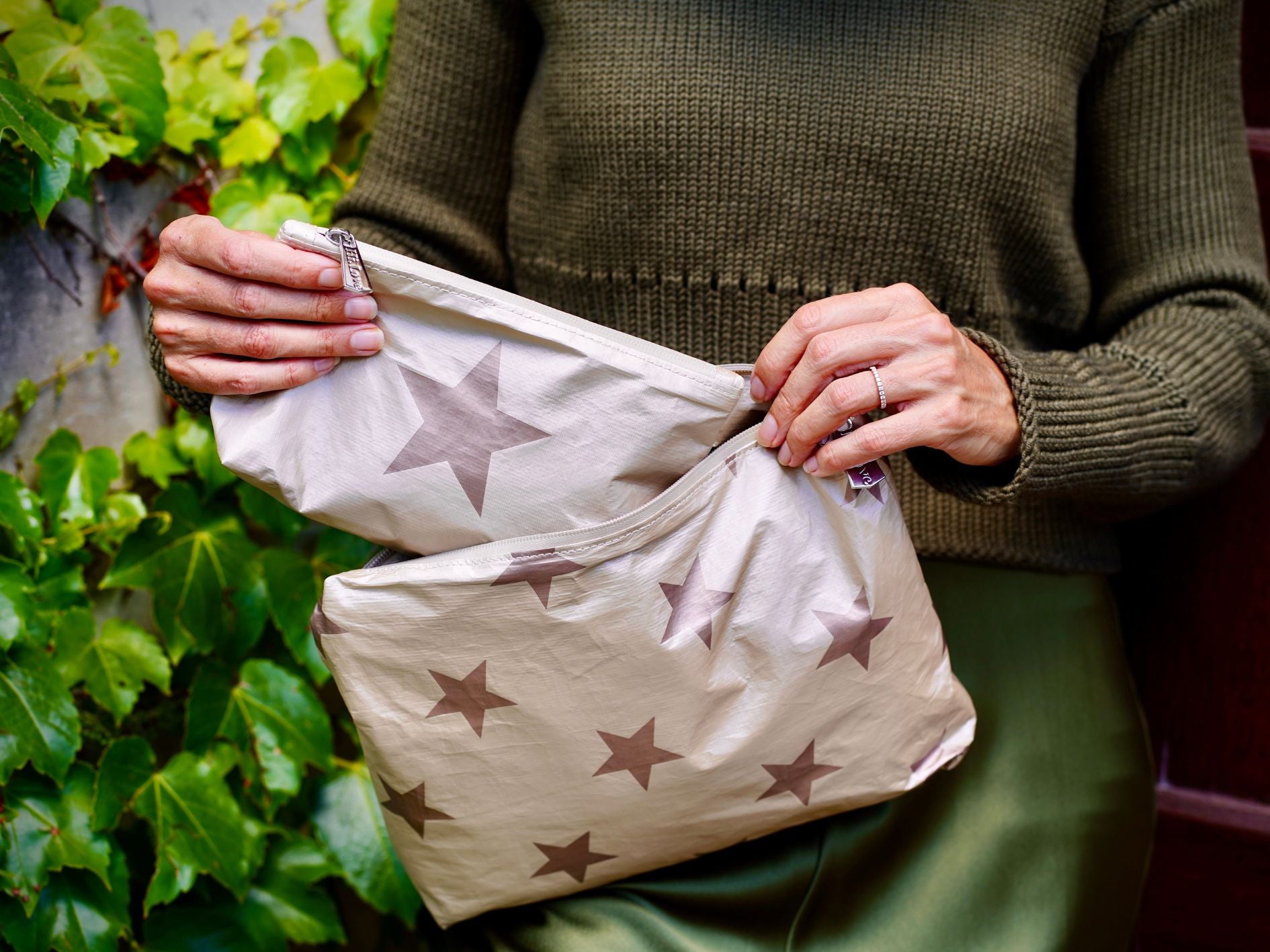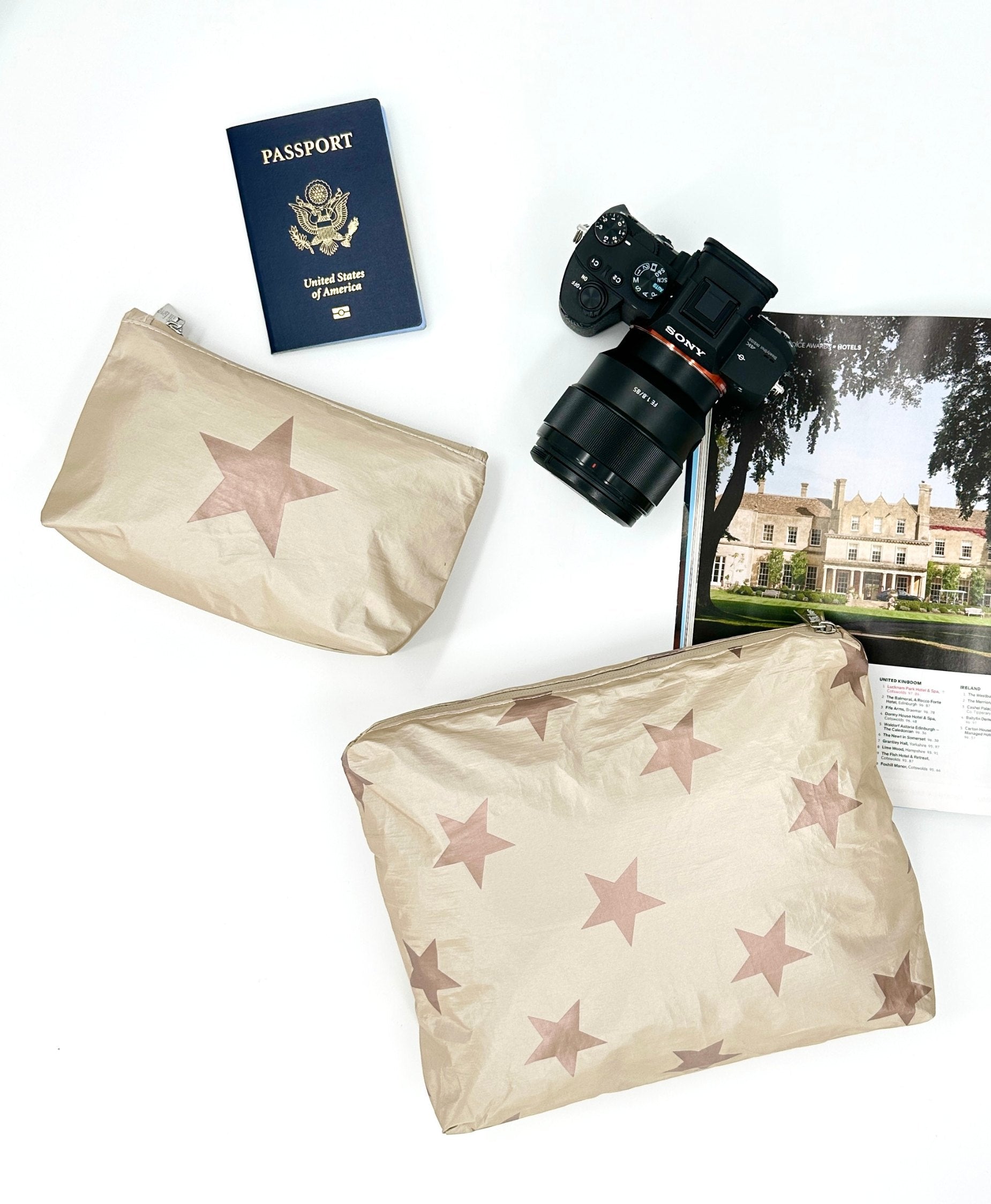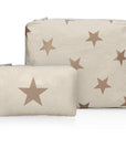 Set of Two - Organizational Pouches - Shimmer Beige with Multi Golden Bronze Stars
