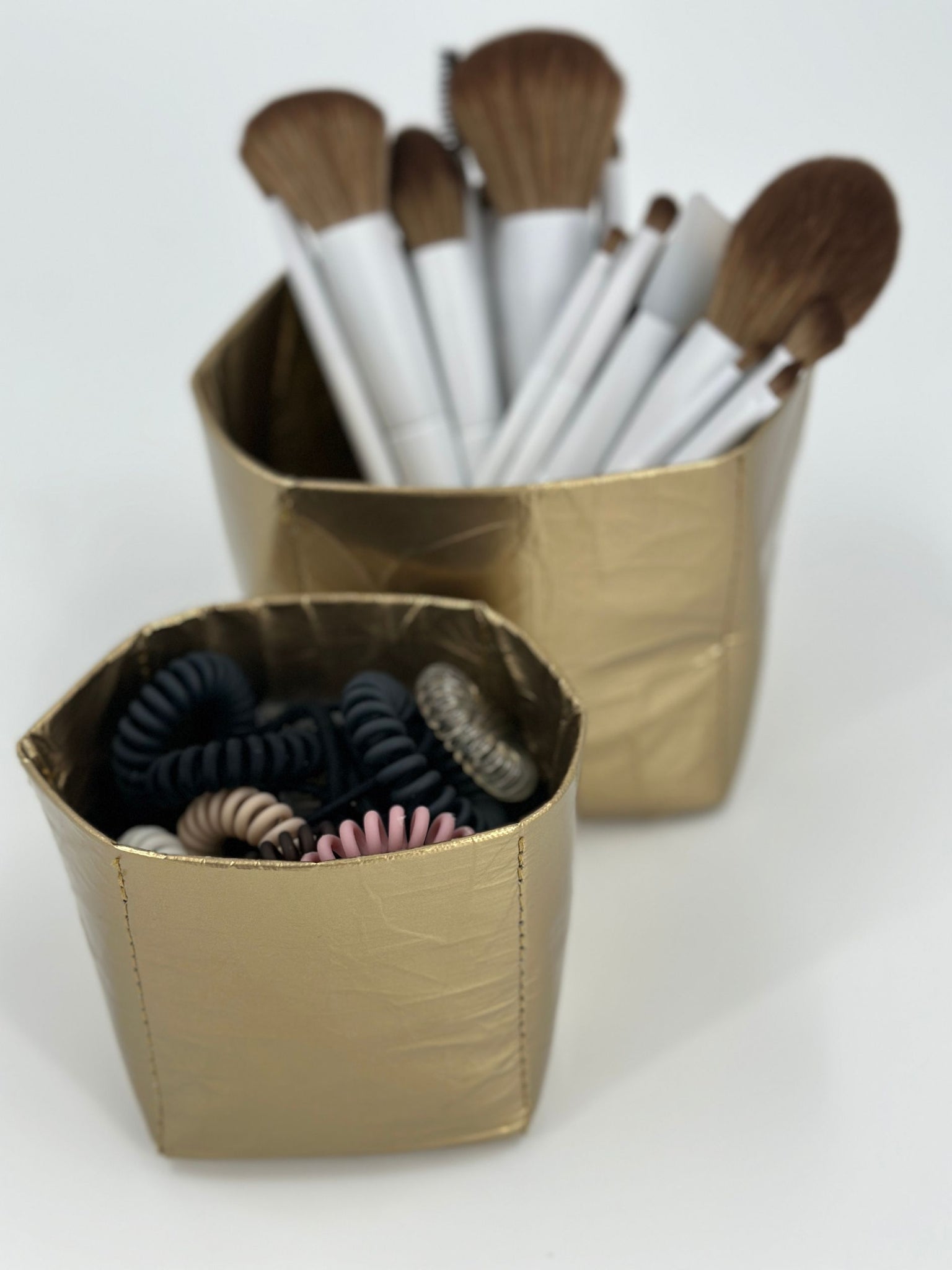 Our Gold Cup Duo of foldable Travel Cups will be your new favorite accessory at home and on the go! Organize your office supplies, store your sink sponge, share your candies, use it as a coaster for your water bottle or as a pot for your favorite plant!