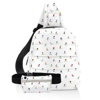 "Ski Lovers" Set of Two - Puffer Crossbody Backpack and Fanny Pack in Dancing Skiers